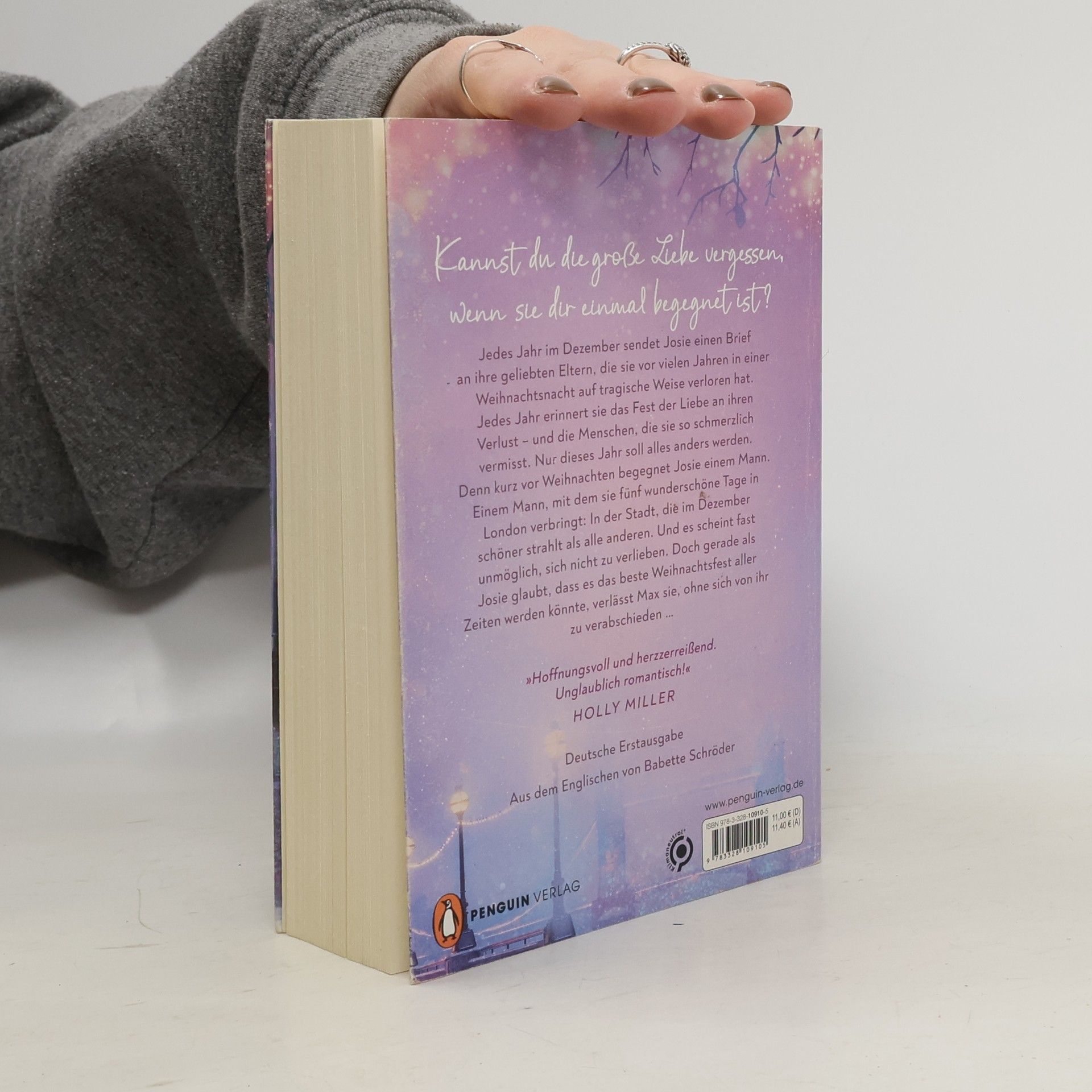 Kannst du die große Liebe vergessen, wenn sie dir einmal begegnet ist? Jedes Jahr im Dezember sendet Josie einen Brief an ihre geliebten Eltern, die sie vor vielen Jahren in einer Weihnachtsnacht auf tragische Weise verloren hat. Jedes Jahr erinnert sie das Fest der Liebe an ihren Verlust – und die Menschen, die sie so schmerzlich vermisst. Nur dieses Jahr soll alles anders werden. Denn kurz vor Weihnachten begegnet Josie einem Mann. Einem Mann, mit dem sie fünf wunderschöne Tage in London verbringt: In der Stadt, die im Dezember schöner strahlt als alle anderen. Und es scheint fast unmöglich, sich nicht zu verlieben. Doch gerade als Josie glaubt, dass es das beste Weihnachtsfest aller Zeiten werden könnte, verlässt Max sie, ohne sich von ihr zu verabschieden … Ein Roman, so anrührend und humorvoll wie Notting Hill und Vier Hochzeiten und ein Todesfall . Die ganz große Liebe und der ganz große Schmerz liegen oft nah beieinander. Ein hochemotionaler Liebesroman und Garant für eine Achterbahn der Gefühle. »Ein herzergreifendes, lebensbejahendes Buch, das sich wie eine Umarmung anfühlt.« Josie Silver