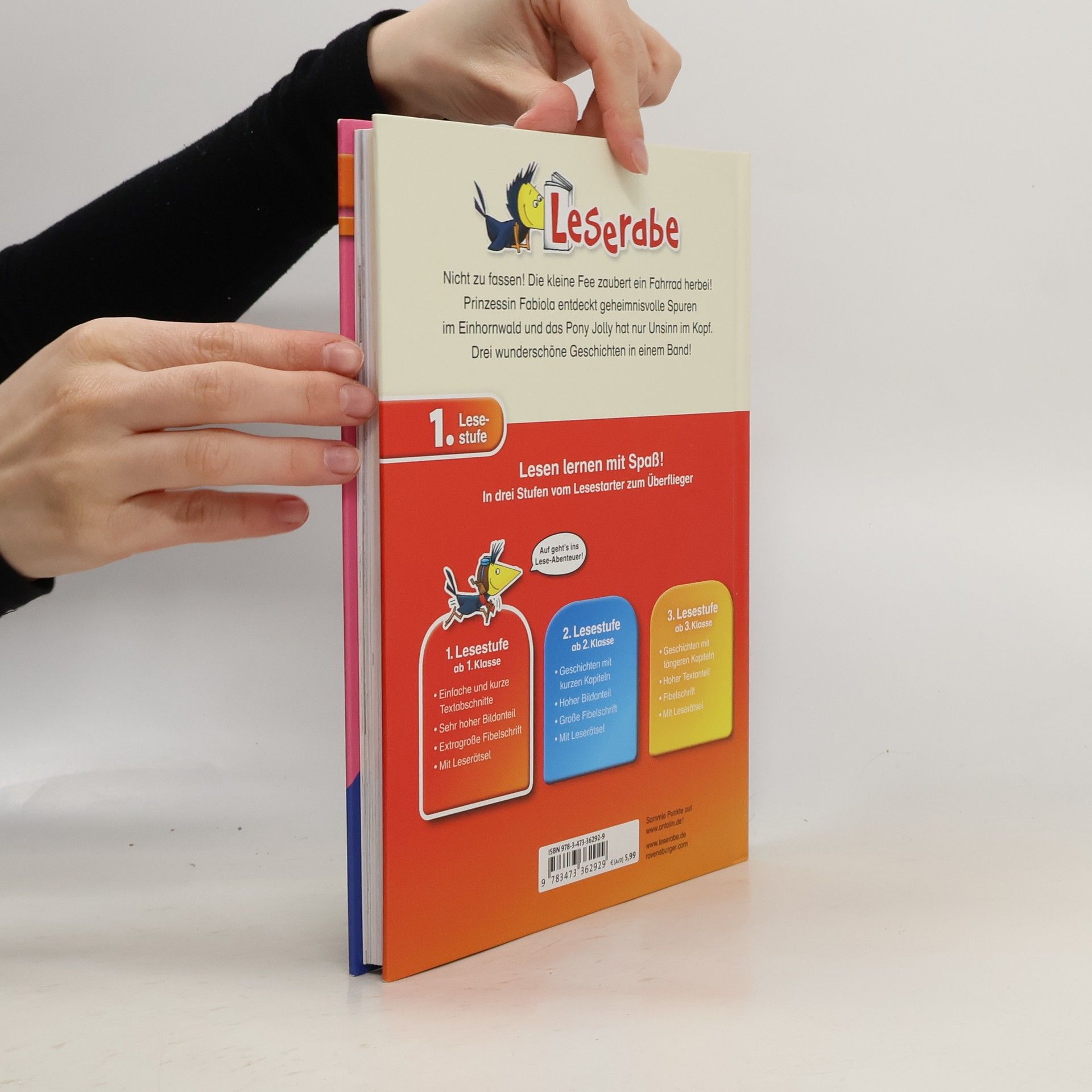 Prinzessin Fabiola entdeckt geheimnisvolle Spuren, die kleine Fee zaubert ein Fahrrad herbei und Marie fiebert dem großen Reitturnier entgegen. Drei zauberhafte Geschichten in einem Band! Lesen lernen wie im Flug! Die Kinderbücher der Reihe Leserabe - 1. Lesestufe wurden mit Pädagogen entwickelt und richten sich an Leseanfänger ab der 1. Klasse. Kurze Texte in großer Fibelschrift sichern erste Leseerfolge und steigern die Lesekompetenz von Mädchen und Jungen ab 6 Jahren. Empfohlen von Stiftung Lesen, gelistet bei Antolin. Weitere Informationen auf leserabe. de.