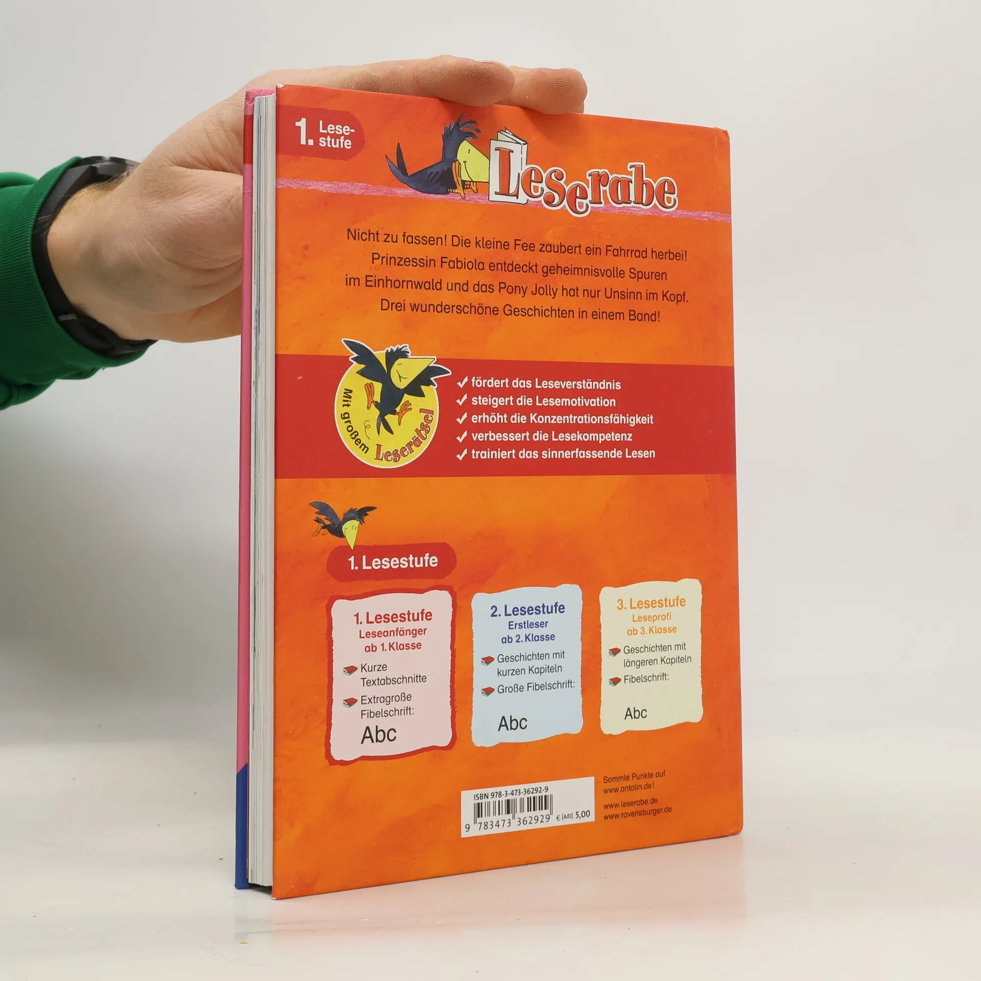 Prinzessin Fabiola entdeckt geheimnisvolle Spuren, die kleine Fee zaubert ein Fahrrad herbei und Marie fiebert dem großen Reitturnier entgegen. Drei zauberhafte Geschichten in einem Band! Lesen lernen wie im Flug! Die Kinderbücher der Reihe Leserabe - 1. Lesestufe wurden mit Pädagogen entwickelt und richten sich an Leseanfänger ab der 1. Klasse. Kurze Texte in großer Fibelschrift sichern erste Leseerfolge und steigern die Lesekompetenz von Mädchen und Jungen ab 6 Jahren. Empfohlen von Stiftung Lesen, gelistet bei Antolin. Weitere Informationen auf leserabe. de.