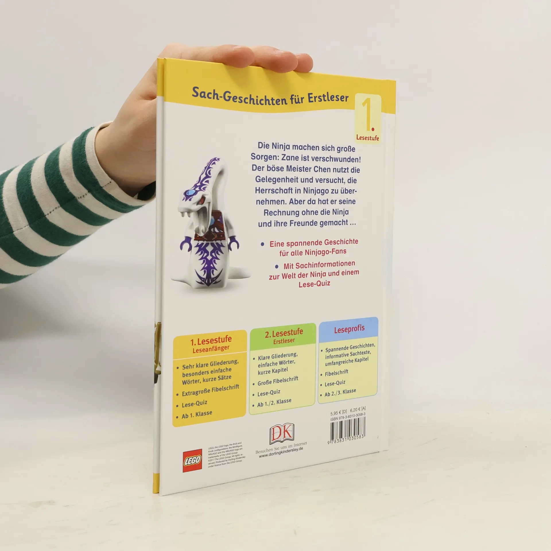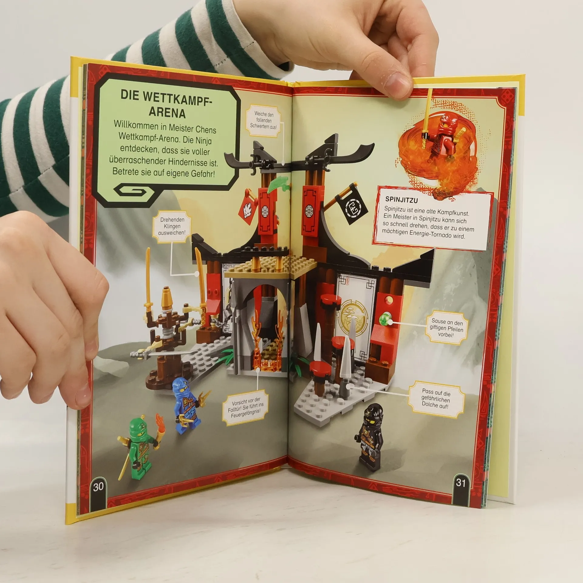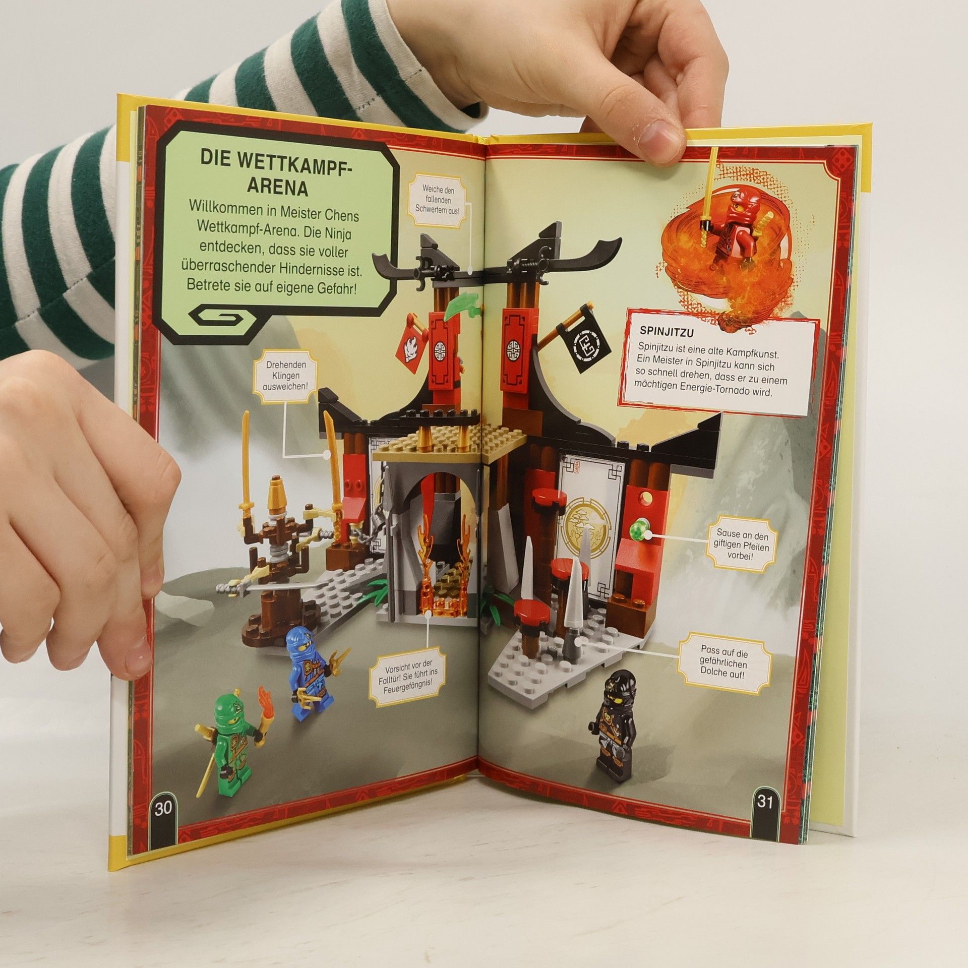Spannende Rahmenhandlung um Zane, den verschwundenen Ninja und Meister der Kampfkunst Spinjitzu. Ergänzt durch eine Vielzahl an Hintergrundinformationen werden die Figuren und LEGO-Schauplätze übergroß auf Farbfotos präsentiert. Ab 6