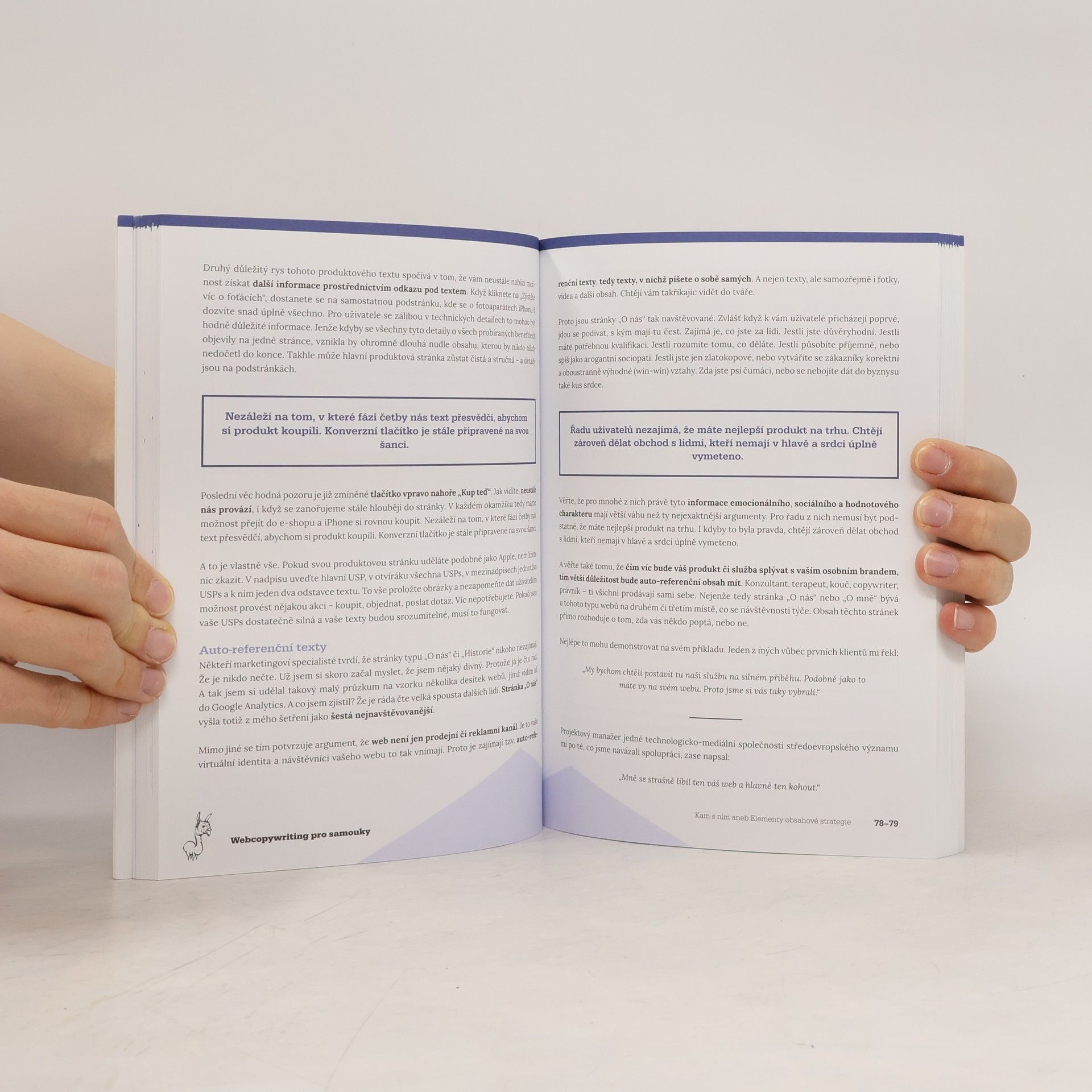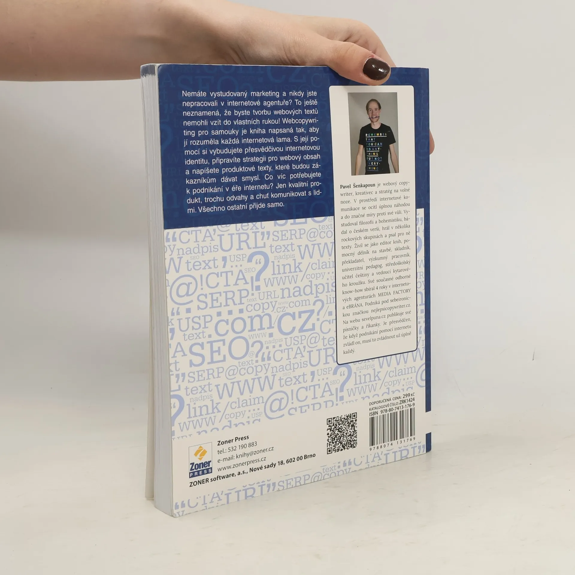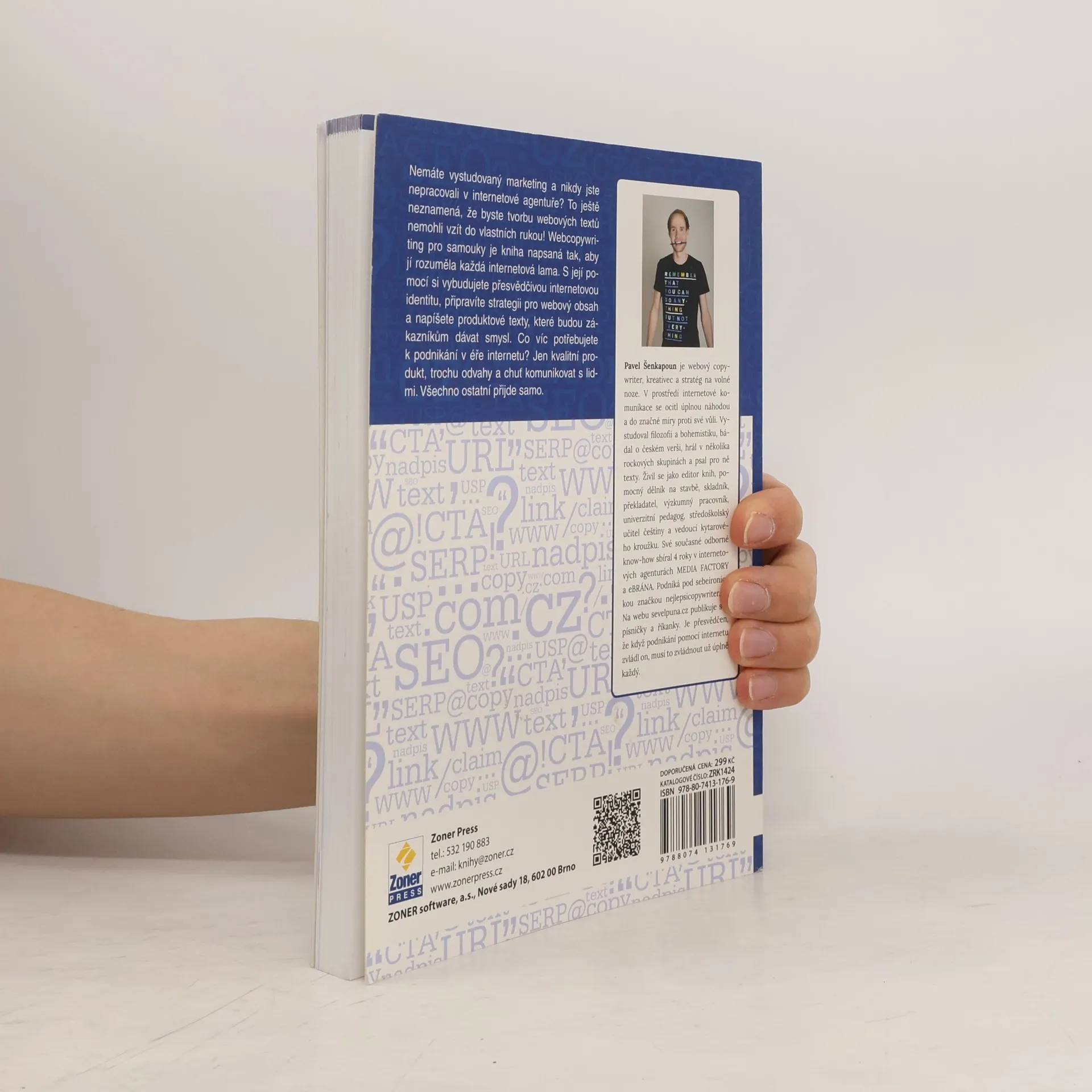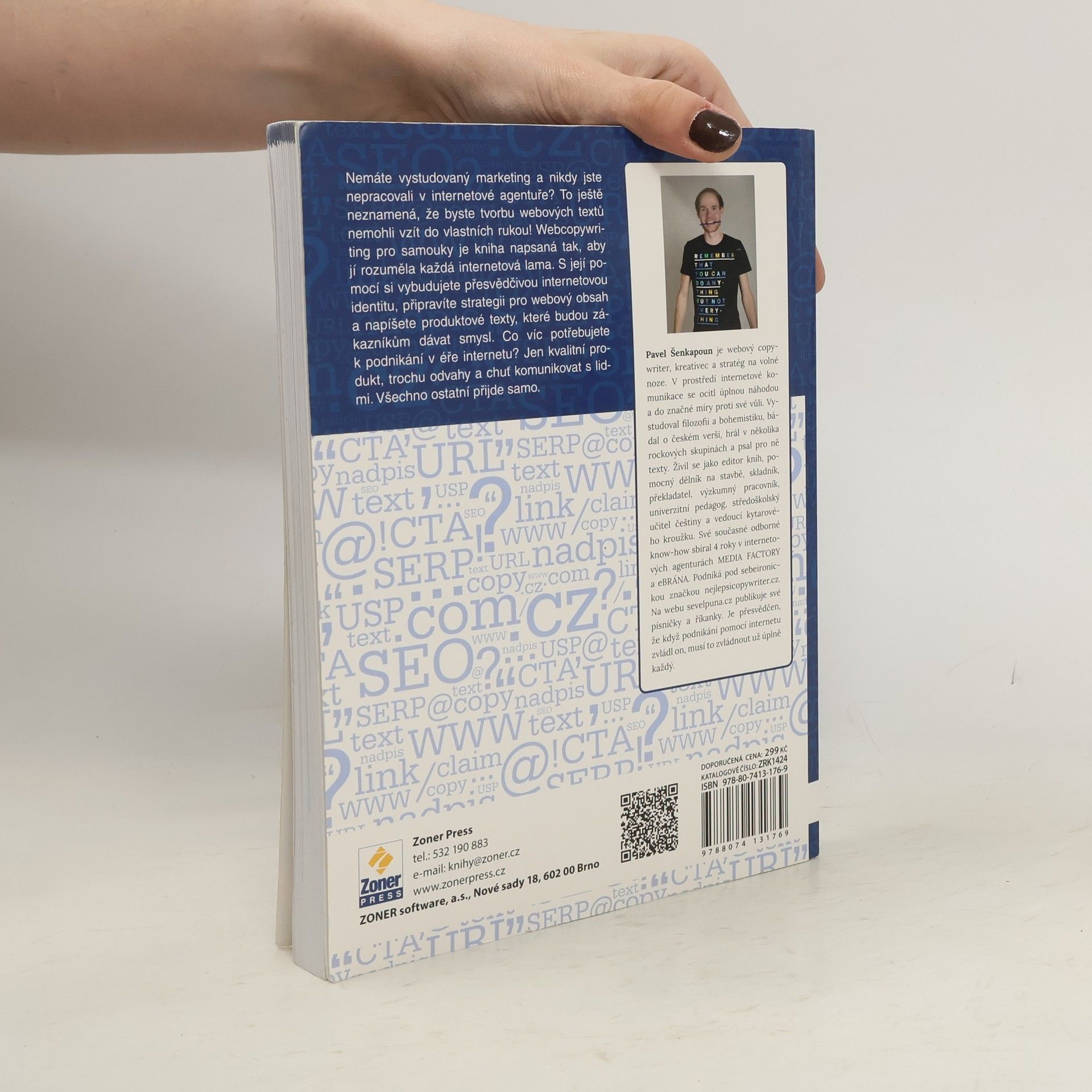 Z internetové lamy svým vlastním copywriterem (snadno a rychle). Nemáte vystudovaný marketing a nikdy jste nepracovali v internetové agentuře? To ještě neznamená, že byste tvorbu webových textů nemohli vzít do vlastních rukou! Webcopywriting pro samouky je kniha napsaná tak, aby jí rozuměla každá internetová lama. S její pomocí si vybudujete přesvědčivou internetovou identitu, připravíte strategii pro webový obsah a napíšete produktové texty, které budou zákazníkům dávat smysl. Co víc potřebujete k podnikání v éře internetu? Jen kvalitní produkt, trochu odvahy a chuť komunikovat s lidmi. Všechno ostatní přijde samo. Webový copywriter a kreativec Pavel Šenkapoun zúročil své zkušenosti s psaním textů na zakázku a vytvořil knihu, která je v mnoha ohledech jedinečná. Svým osobitým stylem popisuje, co si před psaním textů na web a budováním svojí značky rozmyslet, jak zformulovat prodejní argumenty, zvolit cílovou skupinu, jak napsat headline nebo také, jaká by měla být správná struktura vašeho webu.