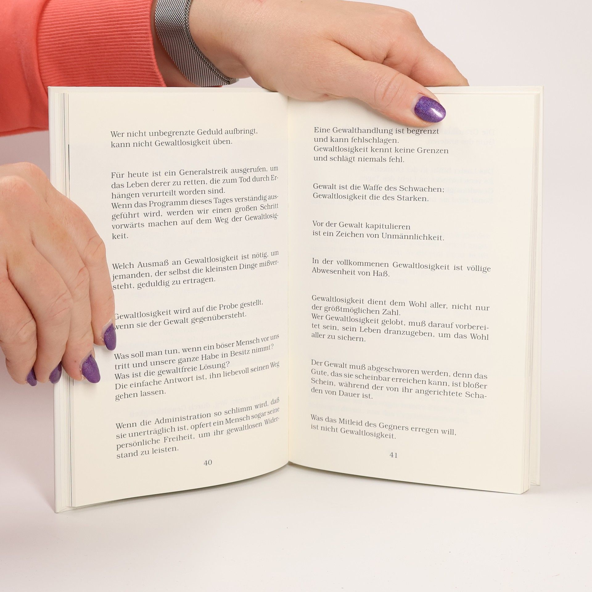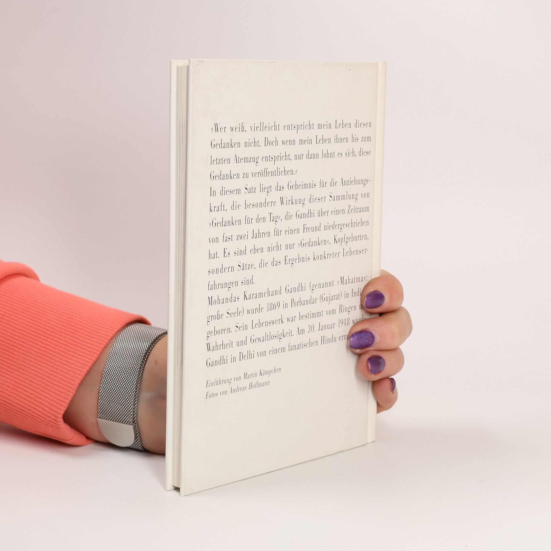 Zwischen November 1944 und Oktober 1946 schrieb Gandhi Tag für Tag einen kurzen Gedanken für einen Freund, der in einer schmerzlichen Situation Trost brauchte. Er spricht von Leben und Tod, Schmerz und Freude, Gewalt und Gewaltlosigkeit; in ihrer Tiefe und Einfachheit zeugen die Texte von der Erfahrung und Weisheit einer großen, tief gläubigen Persönlichkeit.