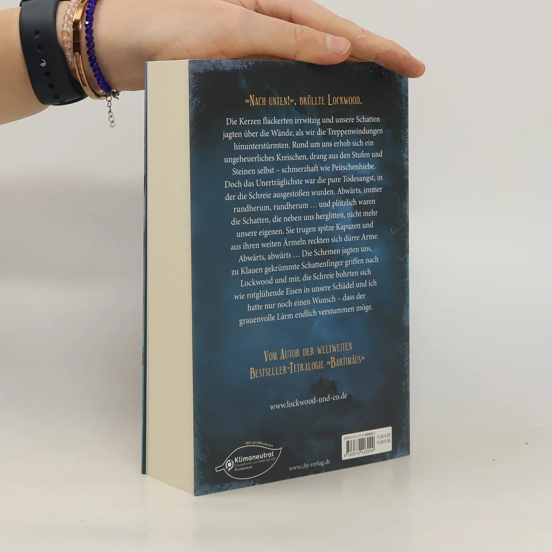 Geister, Ghoule, Grabgeflüster: Die Agenten von Lockwood & Co. sind allem gewachsen London, England: In den Straßen geht des Nachts das Grauen um. Unerklärliche Todesfälle ereignen sich, Menschen verschwinden und um die Ecken wabern Schatten, die sich nur zu oft in tödliche von Geisterwesen ausgesandte Plasmanebel verwandeln. Denn seit Jahrzehnten wird Großbritannien von einer wahren Epidemie an Geistererscheinungen heimgesucht. Überall im Land haben sich Agenturen gebildet, die in den heimgesuchten Häusern Austreibungen vornehmen. Hochgefährliche Unternehmungen bei denen sie, obwohl mit Bannkreisketten, Degen und Leuchtbomben ausgerüstet, nicht selten ihr Leben riskieren. So auch die drei Agenten von Lockwood & Co. Dem jungen Team um den charismatischen Anthony Lockwood ist allerdings bei einem Einsatz ein fatales Missgeschick passiert. Um die Klage abwenden und den Schadenersatz dafür aufbringen zu können, müssen die drei Agenten von Lockwood & Co. einen hochgefährlichen und zutiefst dubiosen Auftrag annehmen. Dieser führt sie in eines der verrufensten Herrenhäuser des Landes und stellt sie auf eine Probe, bei der es um nichts weniger als Leben oder Tod geht ...