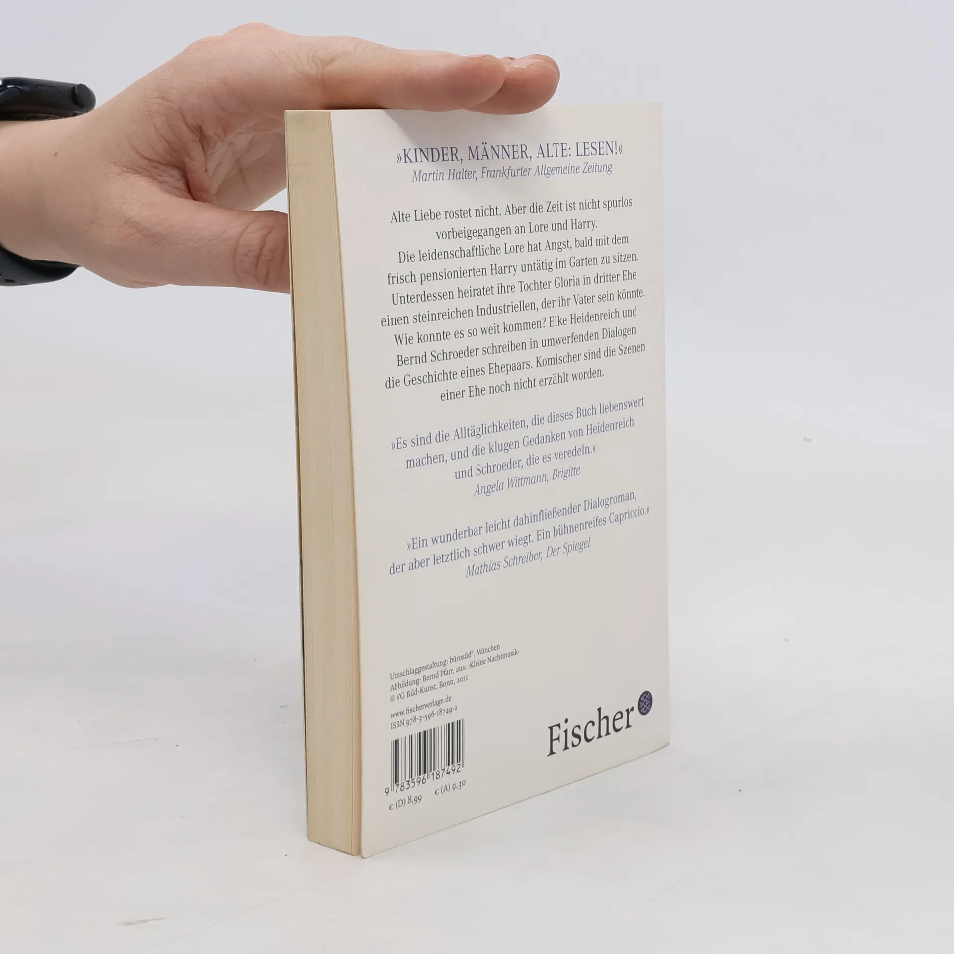 Alte Liebe rostet nicht. Aber die Zeit ist nicht spurlos vorbeigegangen an Lore und Harry. Die leidenschaftliche Lore hat Angst, bald mit dem frisch pensionierten Harry untätig im Garten zu sitzen. Unterdessen heiratet ihre Tochter Gloria in dritter Ehe einen steinreichen Industriellen, der ihr Vater sein könnte. Wie konnte es so weit kommen? Elke Heidenreich und Bernd Schroeder erzählen in umwerfenden Dialogen die Geschichte eines Ehepaars. Komischer sind die Szenen einer Ehe noch nicht erzählt worden.