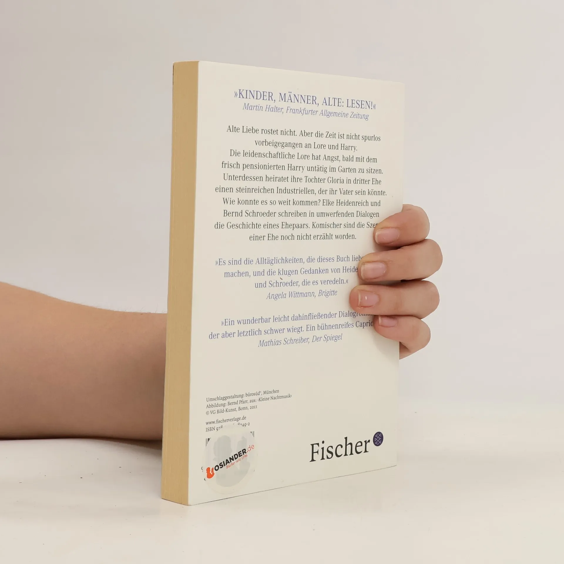 Alte Liebe rostet nicht. Aber die Zeit ist nicht spurlos vorbeigegangen an Lore und Harry. Die leidenschaftliche Lore hat Angst, bald mit dem frisch pensionierten Harry untätig im Garten zu sitzen. Unterdessen heiratet ihre Tochter Gloria in dritter Ehe einen steinreichen Industriellen, der ihr Vater sein könnte. Wie konnte es so weit kommen? Elke Heidenreich und Bernd Schroeder erzählen in umwerfenden Dialogen die Geschichte eines Ehepaars. Komischer sind die Szenen einer Ehe noch nicht erzählt worden.
