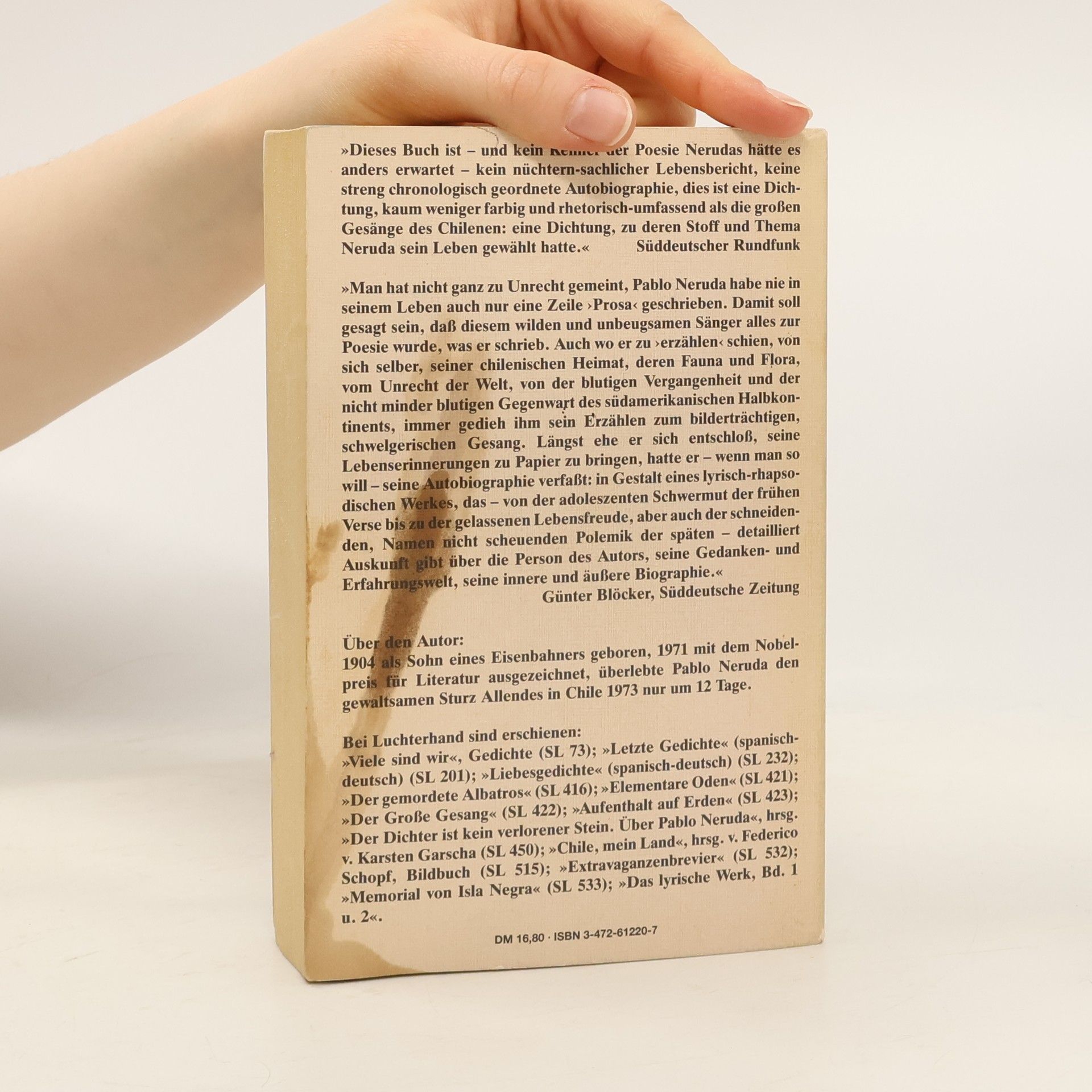 Ich bekenne, ich habe gelebt, Pablo Neruda