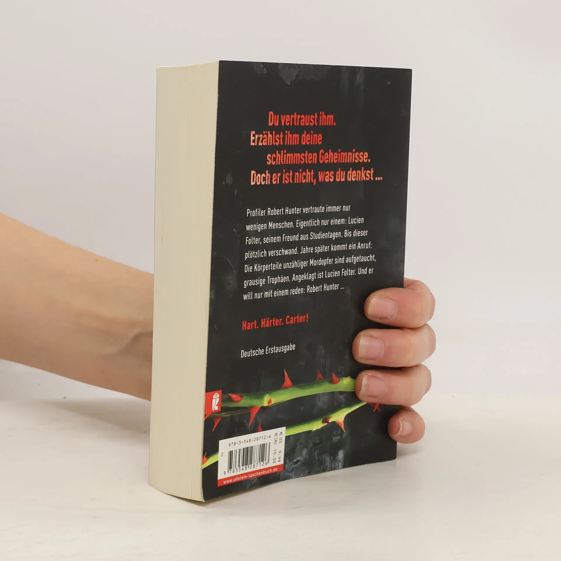 Profiler Robert Hunter vertraut nur wenigen Menschen. Eigentlich gibt es nur einen, für den er immer seine Hand ins Feuer legt. Lucien Folter, seinen Freund aus Studientagen. Beide können Menschen besser lesen als jeder andere. Hunter vertraute Folter seine engsten Geheimnisse an. Bis dieser plötzlich verschwand. Jetzt kommt ein Anruf. Die Körperteile unzähliger Mordopfer sind aufgetaucht, grausige Trophäen. Angeklagt ist Lucien Folter. Und er will nur mit einem reden: Robert Hunter …