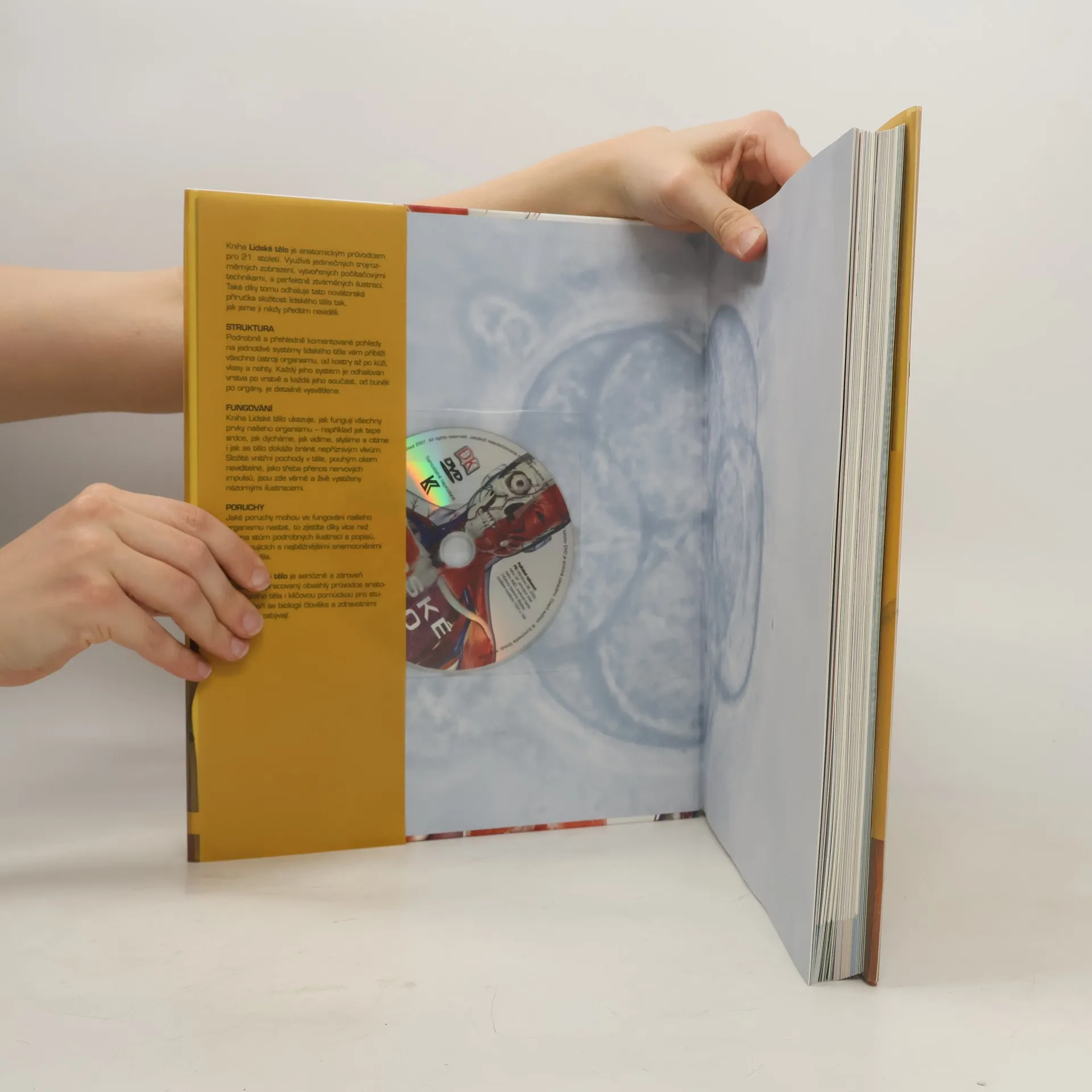 Lidské tělo Ilustrovaný průvodce jeho strukturou, fungováním a poruchami Kniha je anatomickým průvodcem pro 21. století. Využívá jedinečných trojrozměrných zobrazení, vytvořených počítačovými technikami, a kvalitních mikrofotografií a díky tomu odhaluje složitost lidského těla tak, jak jsme ji nikdy předtím neviděli. Podrobně a přehledně komentované pohledy na jednotlivé systémy lidského těla přibližují všechna ústrojí organismu, od kosterního a svalového systému až po kůži, vlasy a nehty. Každý systém je odhalován vrstvu po vrstvě a každá jeho součást, od buněk po orgány, je přístupnou formou vysvětlena. Pro jejich pojmenování je použito jak latinského, tak českého názvosloví. Kniha rovněž názorně ukazuje, jak fungují všechny prvky našeho organismu - jak tepe srdce, jak dýcháme, jak vidíme, slyšíme a cítíme i jak se tělo brání nepříznivým vlivům. Odhaluje i složité, pouhým okem neviditelné vnitřní pochody v těle, jako je třeba přenos nervových impulsů. U každého tělního systému jsou popsány nejběžnější poruchy a onemocnění. Kniha je doplněna slovníkem pojmů a rozsáhlým rejstříkem a jako zajímavě a zároveň seriózně zpracovaná příručka může posloužit studentům biologie a zdravotnických oborů i všem zájemcům z řad veřejnosti.