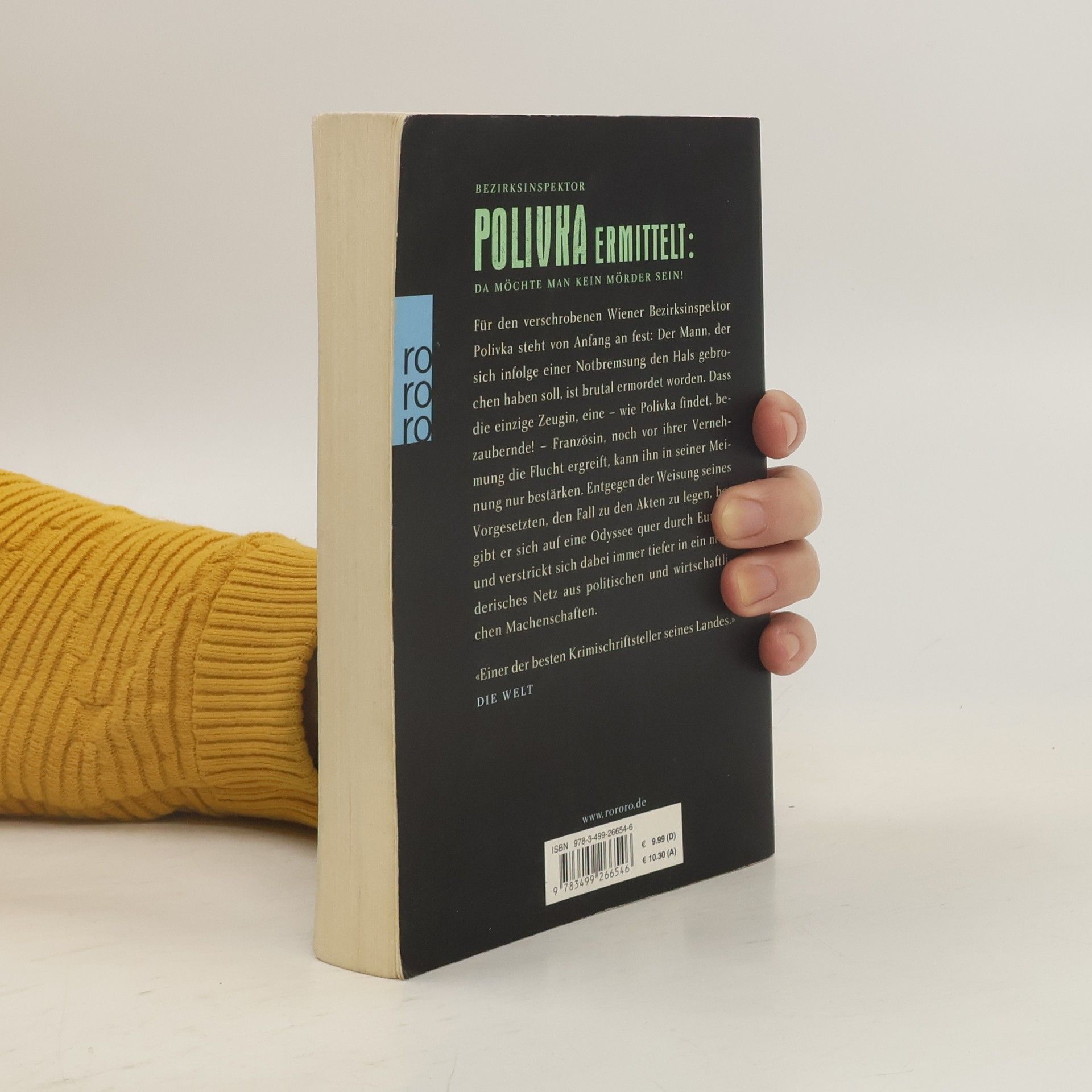 Bezirksinspektor Polivka ermittelt: Da möchte man kein Mörder sein! Für den verschrobenen Wiener Bezirksinspektor Polivka steht von Anfang an fest: Der Mann, der sich infolge einer Notbremsung in einem Zugwaggon den Hals gebrochen haben soll, ist tatsächlich brutal ermordet worden. Dass die einzige Zeugin, eine – wie Polivka findet, bezaubernde! – Französin, noch vor ihrer Vernehmung die Flucht ergreift, kann ihn in seiner Meinung nur bestärken. Gegen die Weisung seines Vorgesetzten, den Fall zu den Akten zu legen, begibt er sich auf eine aberwitzige Odyssee quer durch Europa und verstrickt sich dabei immer tiefer in ein mörderisches Netz aus politischen und wirtschaftlichen Machenschaften. «Einer der besten Krimischriftsteller seines Landes.» Die Welt