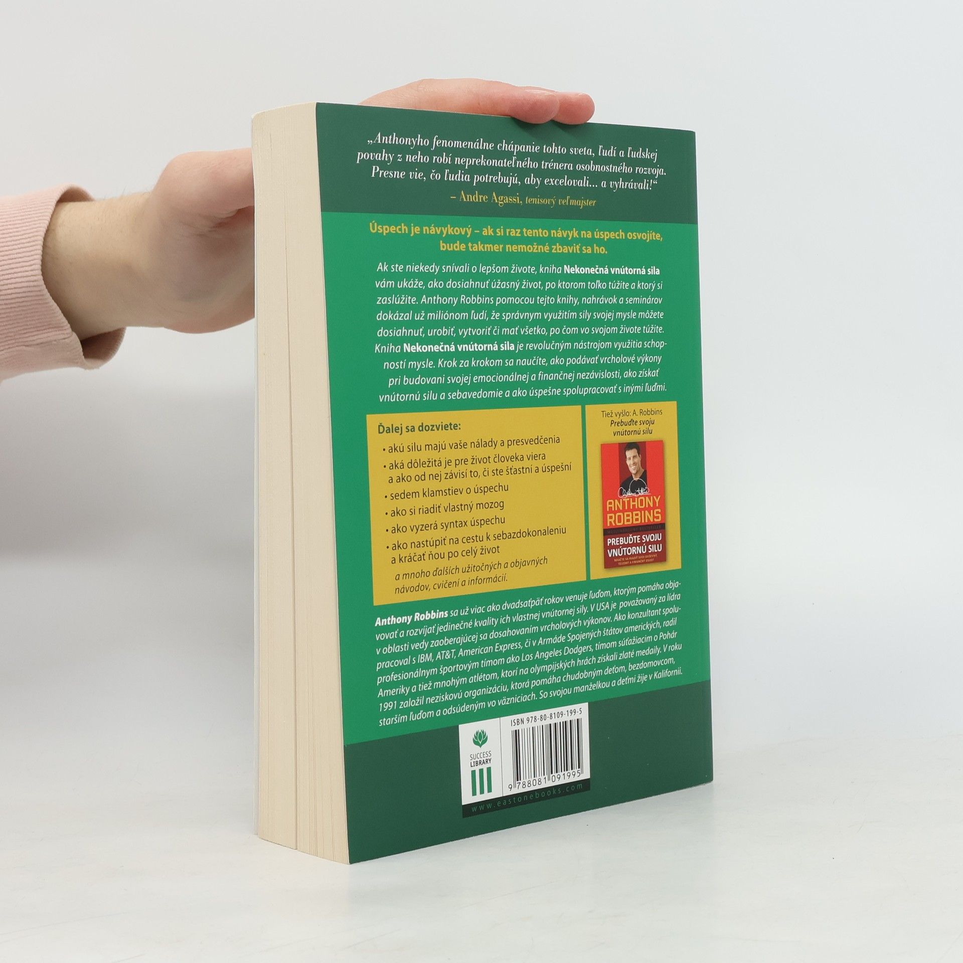 Ak ste niekedy snívali o lepšom živote, kniha Nekonečná vnútorná sila vám ukáže, ako dosiahnuť úžasný život, po ktorom toľko túžite a ktorý si zaslúžite. Anthony Robbins pomocou tejto knihy, nahrávok a seminárov dokázal už miliónom ľudí, že správnym využitím sily svojej mysle môžete dosiahnuť, urobiť, vytvoriť či mať všetko, po čom vo svojom živote túžite. Kniha Nekonečná vnútorná sila je revolučným nástrojom využitia schopností mysle. Krok za krokom sa naučíte, ako podávať vrcholové výkony pri budovani svojej emocionálnej a finančnej nezávislosti, ako získať vnútornú silu a sebavedomie a ako úspešne spolupracovať s inými ľuďmi.