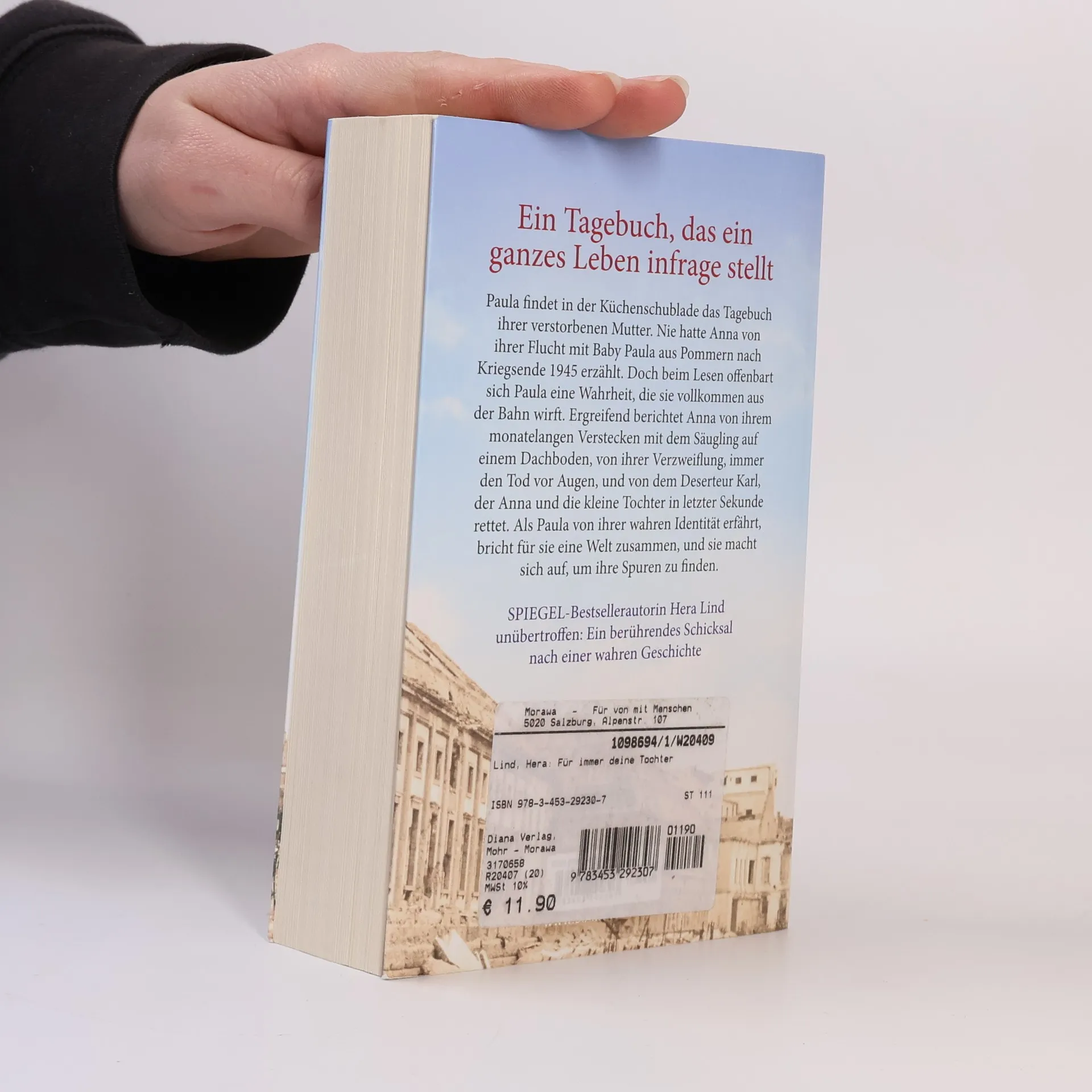 Paula findet in einer Küchenschublade das Tagebuch ihrer verstorbenen Mutter. Nie hatte Anna von ihrer Flucht mit Baby Paula aus Pommern nach Kriegsende 1945 erzählt. Doch beim Lesen offenbart sich Paula eine Wahrheit, die sie vollkommen aus der Bahn wirft. Ergreifend berichtet Anna von ihrem monatelangen Verstecken mit dem Säugling auf einem Dachboden, von ihrer Verzweiflung, immer den Tod vor Augen, und von dem Deserteur Karl, der Anna und die kleine Tochter in letzter Sekunde rettet. Als Paula von ihrer wahren Identität erfährt, bricht für sie eine Welt zusammen, und sie macht sich auf, um ihre Spuren zu finden.