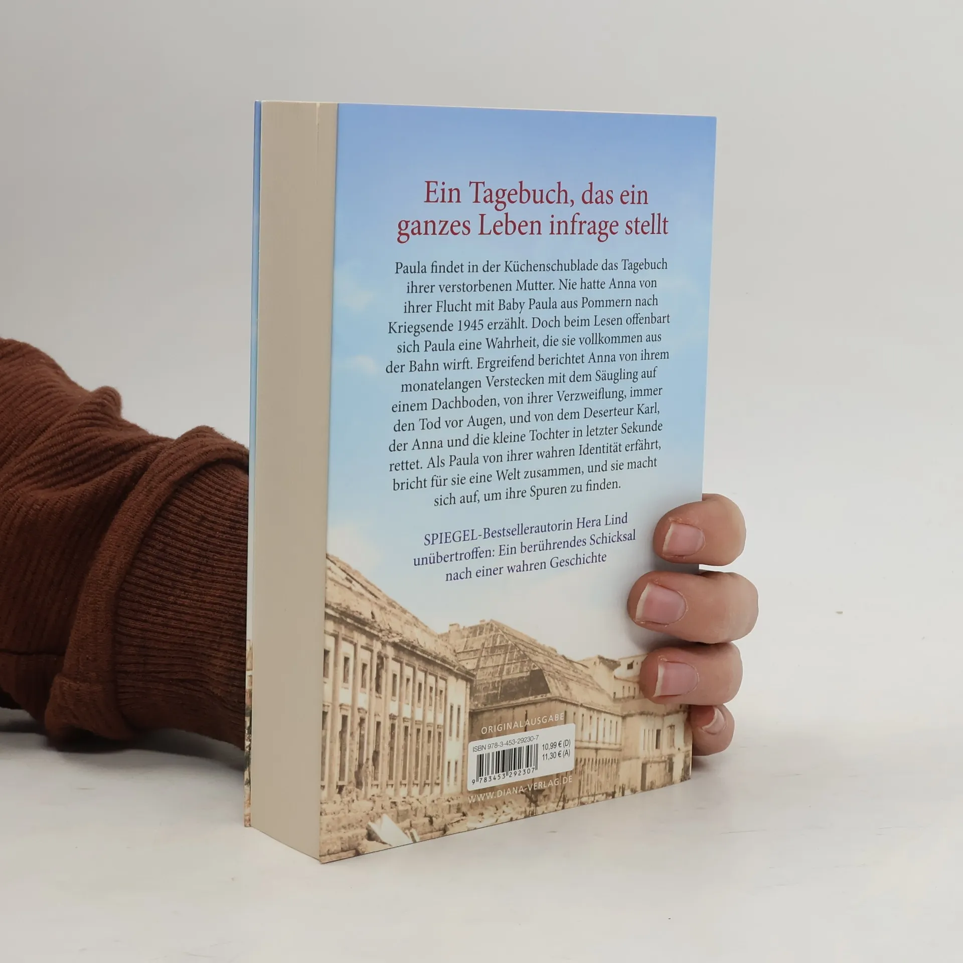 Paula findet in einer Küchenschublade das Tagebuch ihrer verstorbenen Mutter. Nie hatte Anna von ihrer Flucht mit Baby Paula aus Pommern nach Kriegsende 1945 erzählt. Doch beim Lesen offenbart sich Paula eine Wahrheit, die sie vollkommen aus der Bahn wirft. Ergreifend berichtet Anna von ihrem monatelangen Verstecken mit dem Säugling auf einem Dachboden, von ihrer Verzweiflung, immer den Tod vor Augen, und von dem Deserteur Karl, der Anna und die kleine Tochter in letzter Sekunde rettet. Als Paula von ihrer wahren Identität erfährt, bricht für sie eine Welt zusammen, und sie macht sich auf, um ihre Spuren zu finden.