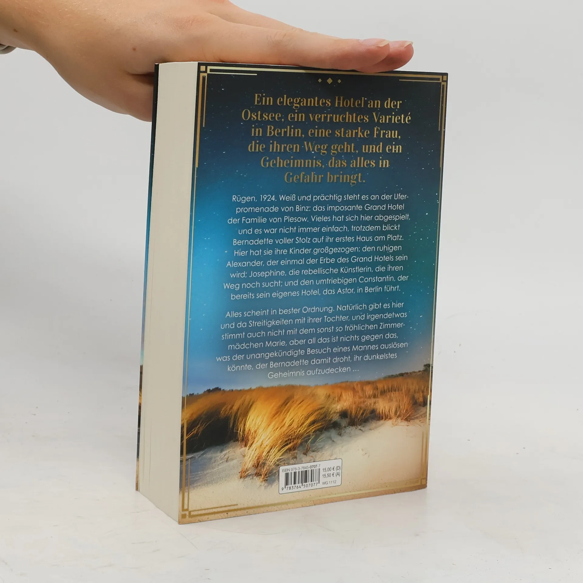 Ein elegantes Hotel an der Ostsee, ein verruchtes Varieté in Berlin, eine starke Frau, die ihren Weg geht, und ein Geheimnis, das alles in Gefahr bringt. Rügen, 1924. Weiß und prächtig steht es an der Uferpromenade von Binz: das imposante Grand Hotel der Familie von Plesow. Vieles hat sich hier abgespielt, und es war nicht immer einfach, trotzdem blickt Bernadette voller Stolz auf ihr erstes Haus am Platz. Hier hat sie ihre Kinder großgezogen: den ruhigen Alexander, der einmal der Erbe des Grand Hotels sein wird; Josephine, die rebellische Künstlerin, die ihren Weg noch sucht; und den umtriebigen Constantin, der bereits sein eigenes Hotel, das Astor, in Berlin führt. Alles scheint in bester Ordnung. Natürlich gibt es hier und da Streitigkeiten mit ihrer Tochter, und irgendetwas stimmt auch nicht mit dem sonst so fröhlichen Zimmermädchen Marie –, aber all das ist nichts gegen das, was der unangekündigte Besuch eines Mannes auslösen könnte, der Bernadette damit droht, ihr dunkelstes Geheimnis aufzudecken …