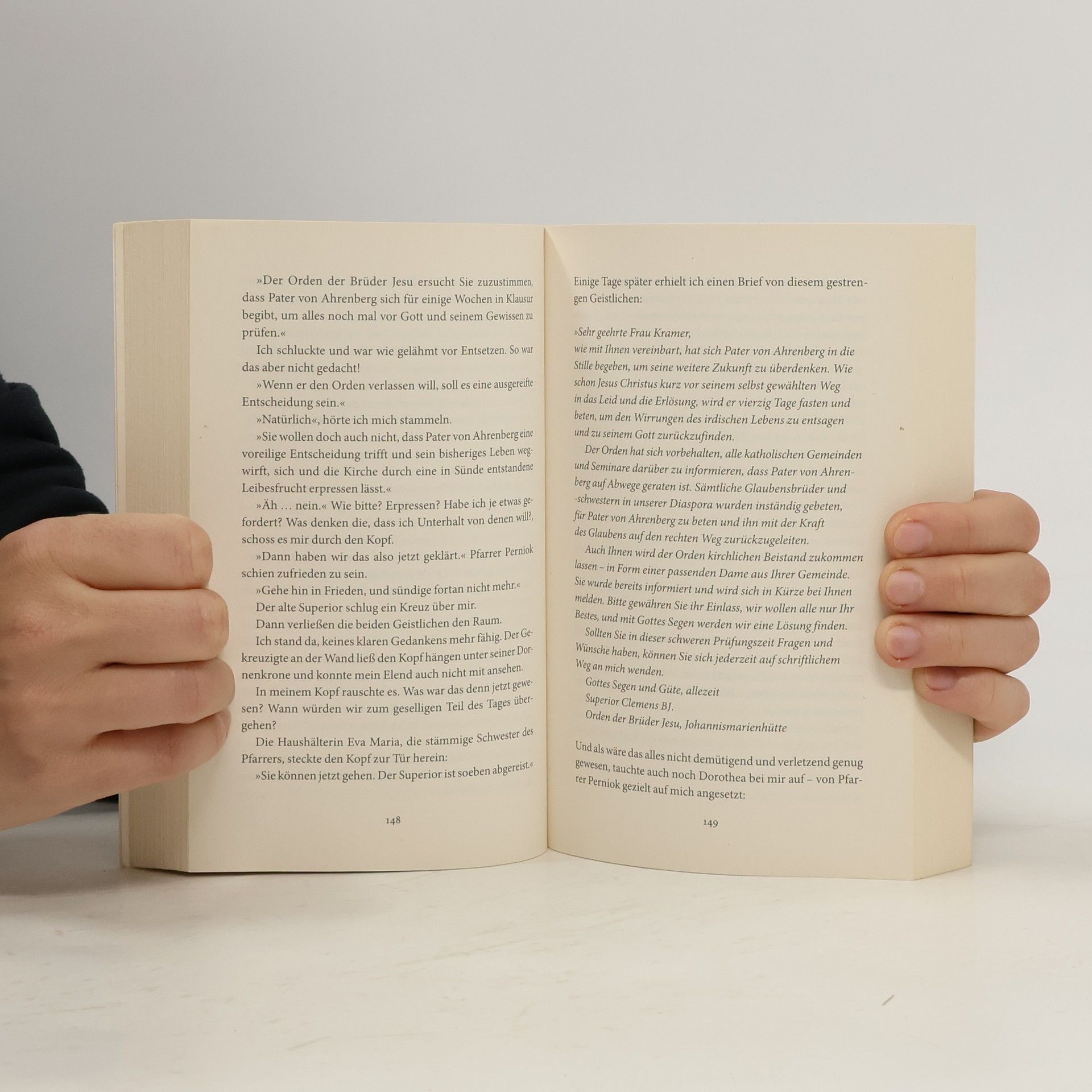 Carina Kramer ist dreifache Mutter, als sie mit Ende dreißig Witwe wird. Sie sucht Trost in der Kirche und begegnet Pater Raphael von Ahrenberg, der seit über zwanzig Jahren im benachbarten Kloster lebt. Der geweihte Priester hat sich mit Leib und Seele dem Zölibat verpflichtet. Doch Carina bringt alles ins Wanken. Sie ist stark, bodenständig, zugleich zärtlich und einfühlsam. Die gemeinsame Liebe ist geprägt von heimlichen Treffen, gefolgt von umso schmerzhafteren Trennungen. Denn die Kirche lässt Raphael nicht ziehen. Von einem klärenden Gespräch mit dem Bischof kehrt er nicht zurück. Carina steht vergebens am Bahnhof. Und es kommt noch schlimmer: Sie ist schwanger. Werden ihre Widersacher trennen, was Gott zusammengeführt hat?