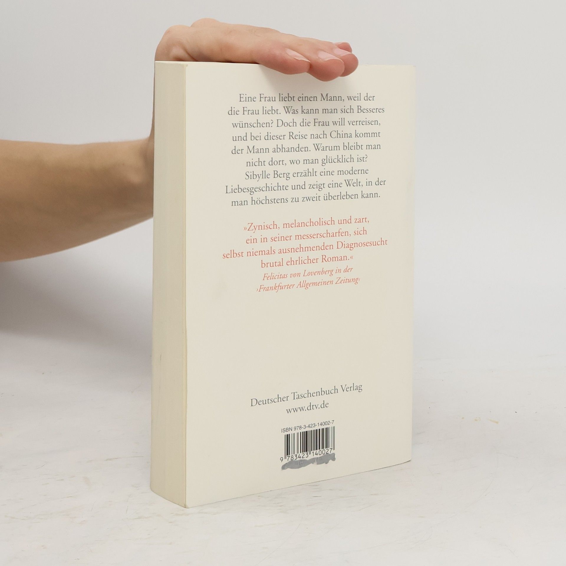 »Ein Plädoyer für mehr Gleichmut in der Liebe.« Kristina Maidt-Zinke in ›Die Zeit‹ Eine Frau liebt einen Mann, weil der die Frau liebt. Was kann man sich Besseres wünschen? Doch die Welt kennt kein Pardon: Auf einer Reise nach China kommt der Mann gleich wieder abhanden, und man fragt sich, ob das mit rechten Dingen zugeht. Warum sucht man nach Veränderung, wenn man das Glück gefunden hat? Warum bleibt man nicht dort, wo man glücklich ist? Sibylle Berg erzählt eine moderne Liebesgeschichte und zeigt mit so melancholischen wie bösartigen Bildern eine Welt, in der man höchstens zu zweit überleben kann.