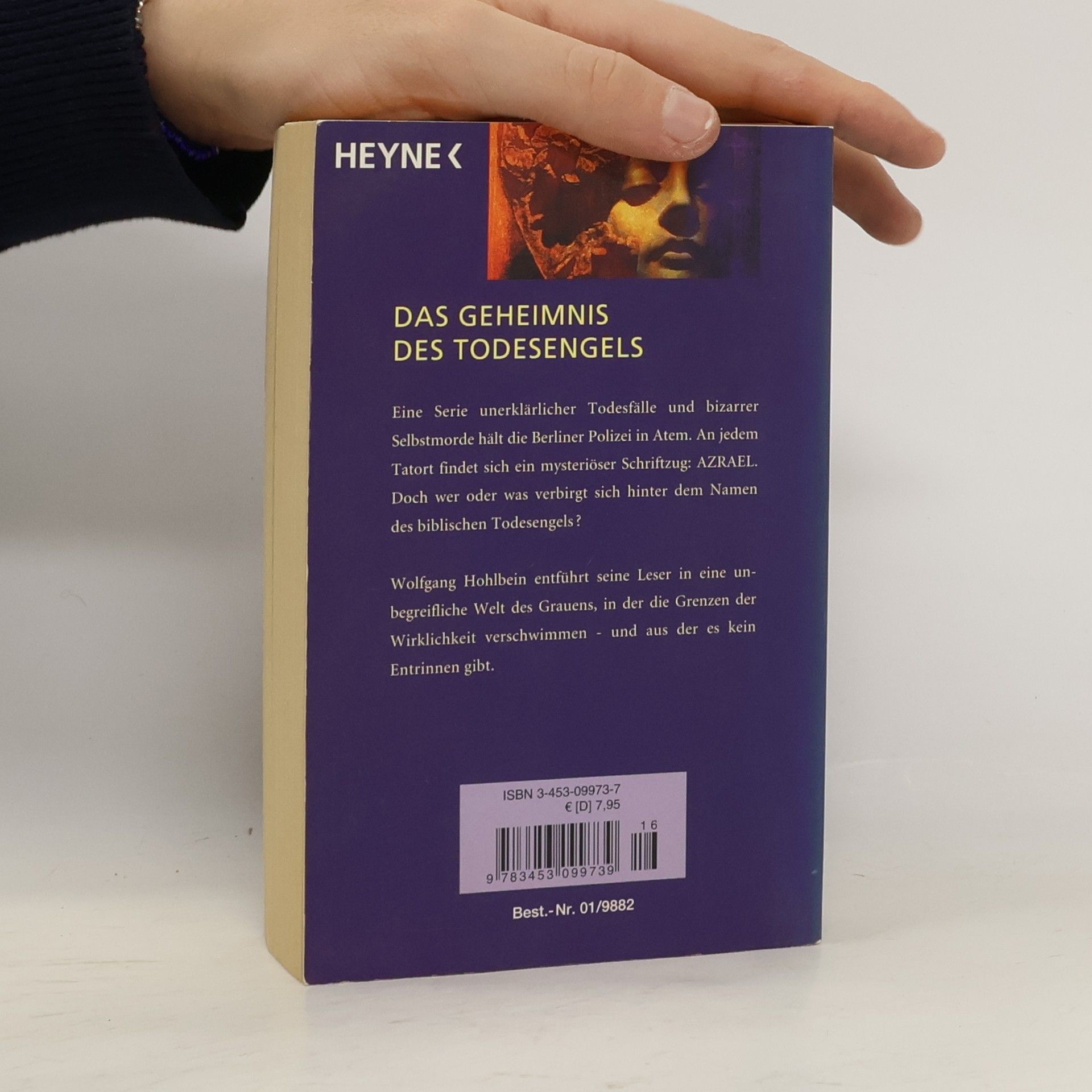 Das Geheimnis des Todesengels. Eine Serie von Selbstmorden und unerklärlichen Todesfällen stellt die Berliner Kriminalpolizei vor ein Rätsel. Nur eines verbindet die Fälle: ein Zettel mit der Aufschrift 'Azrael', der an jedem Tatort gefunden wird.