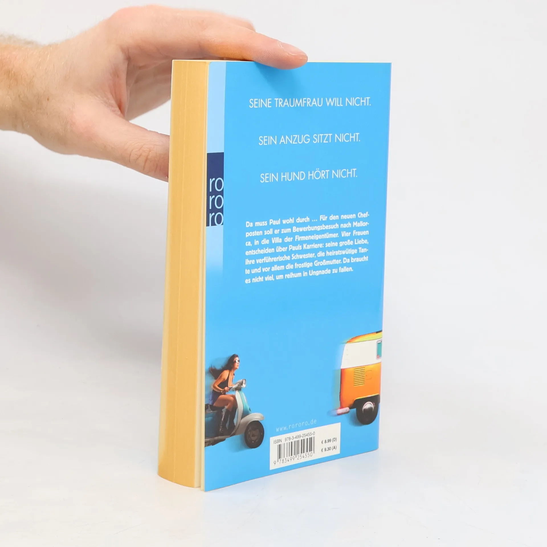 Seine Traumfrau will nicht.Sein Anzug sitzt nicht.Sein Hund hört nicht. Da muss Paul wohl durch … Für den neuen Chefposten soll er zum Bewerbungsbesuch nach Mallorca, in die Villa der Firmeneigentümer. Vier Frauen entscheiden über Pauls Karriere: seine große Liebe, ihre verführerische Schwester, die heiratswütige Tante und vor allem die frostige Großmutter. Da braucht es nicht viel, um reihum in Ungnade zu fallen.