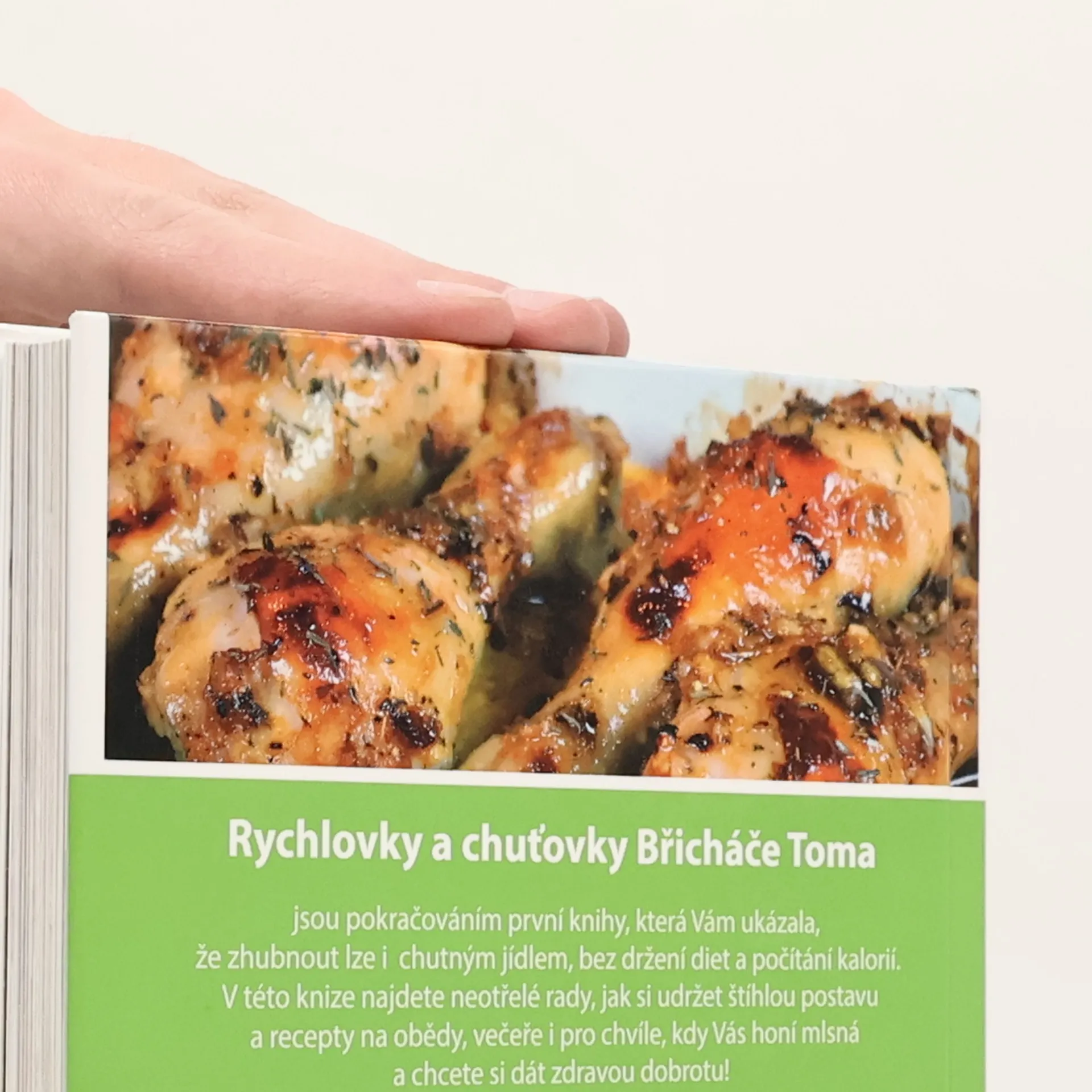 Rychlovky a chuťovky Břicháče Toma jsou pokračováním první knihy, která Vám ukázala, že zhubnout lze i chutným jídlem, bez držení diet a počítání kalorií. Nezáleží na tom, jestli chcete zhubnout nebo si postavu udržet. V knize najdete mé další rady, které jsem využíval při mém hubnutí, když jsem za rok zhubl 27 kg a 33 cm v pase. Těmito principy se řídím i nadále a váhu si bez problémů držím. V kuchařce ale najdete především inspiraci pro zdravé vaření, při němž není použita klasická bílá pšeničná mouka ani bílý cukr. Všechny recepty jsou přesto chutné a se snadnou přípravou. Většinu receptů zvládnete připravit za 30 minut a nemusíte tak trávit v kuchyni dlouhé hodiny. Vybrat si můžete ze sladkých snídaní i svačinek, hlavních jídel s masem i těch bezmasých vhodných pro vegetariány. Snadno také připravíte krémové polévky a pochutnáte si na zdravějších dezertech dochucených medem nebo ovocem. Zatímco první díl se více věnoval snídaním, svačinkám a salátům, nyní najdete větší inspiraci pro hlavní chody, večeře a taky velké množství sladkých receptů. Ochutnejte: Koprovou omáčku bez mouky Snadný hovězí guláš s karotkou Lehké špagety s cuketkou Křupavou tvarůžkovou dobrotu Extra čokoládový řez Trhanec Jablečno-skořicová kolečka a nebo snídaně z hrnečku, které připravíte za 3 minuty