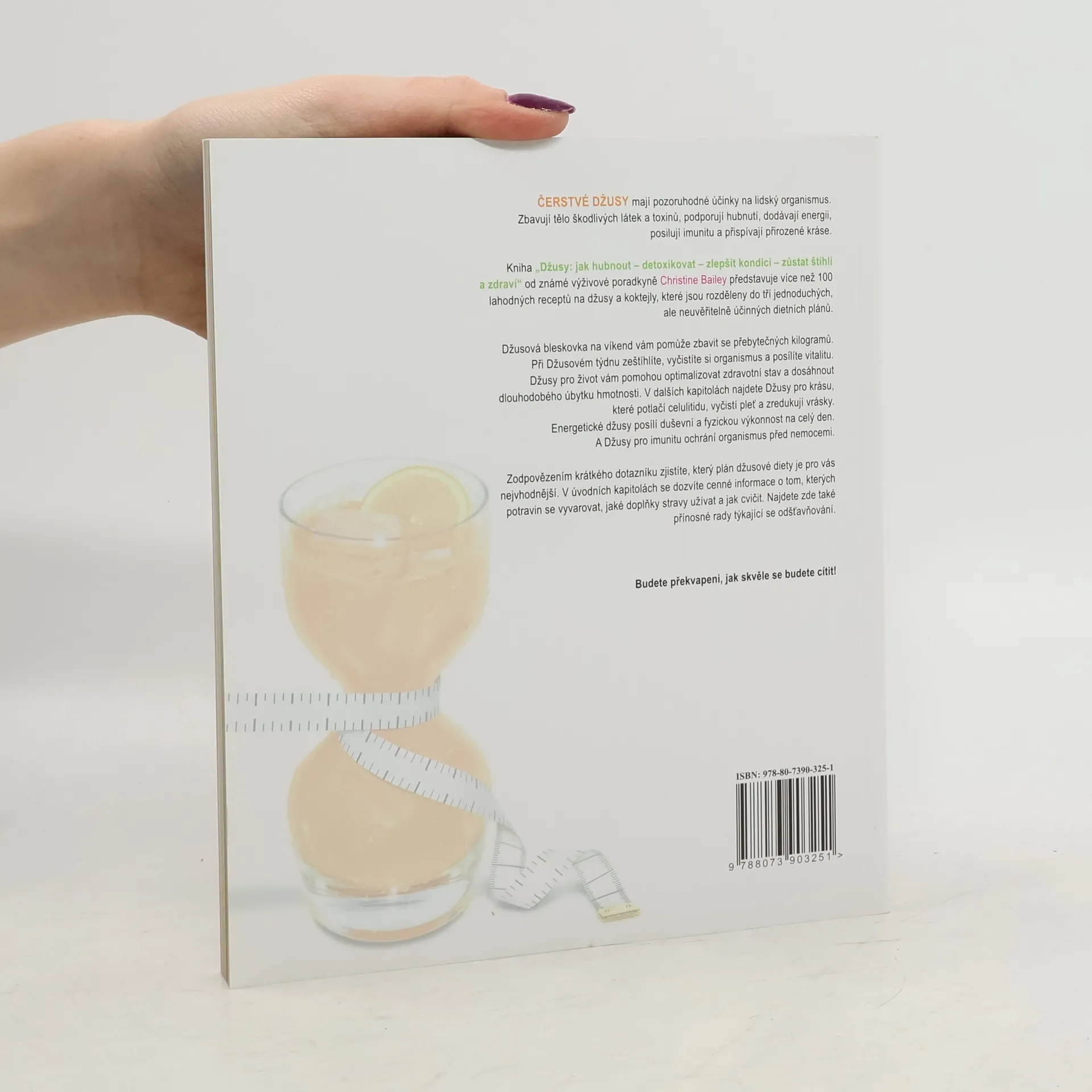 V čerstvých džusech se skrývá pozoruhodná síla. Očišťují organismus, udržují tělesné funkce v rovnováze, pomáhají hubnout, posilují imunitu a dodají nám spoustu energie. V knize najdeme více než stovku receptů rozdělených do tří dietních plánů. Jeden nám pomůže vyzkoušet blahodárné účinky víkendové džusové terapie, druhý je celotýdenní a ve třetím si můžeme vychutnat plnou sílu přírody během měsíce. Navíc se v dalších kapitolách můžeme dozvědět, jak využít celý potenciál, který se v čerstvých šťávách ukrývá.