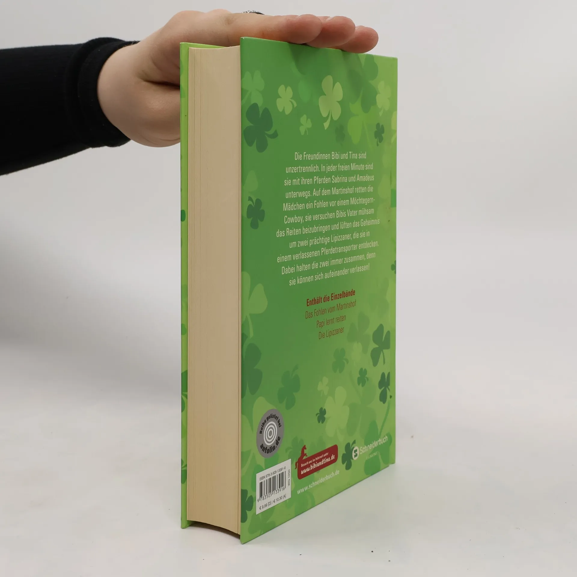 Die Freundinnen Bibi und Tina erleben mit ihren Pferden Sabrina und Amadeus spannende Abenteuer auf dem Martinshof. Sie retten ein Fohlen, versuchen Bibis Vater mühsam das Reiten beizubringen und lüften das Geheimnis um zwei Lipizzaner-Pferde. Dabei halten die beiden immer zusammen, denn sie können sich aufeinander verlassen! Enthält die Einzelbände: Das Fohlen vom Martinshof (Band 1) Papi lernt reiten (Band 3) Die Lipizzaner (Band 16)