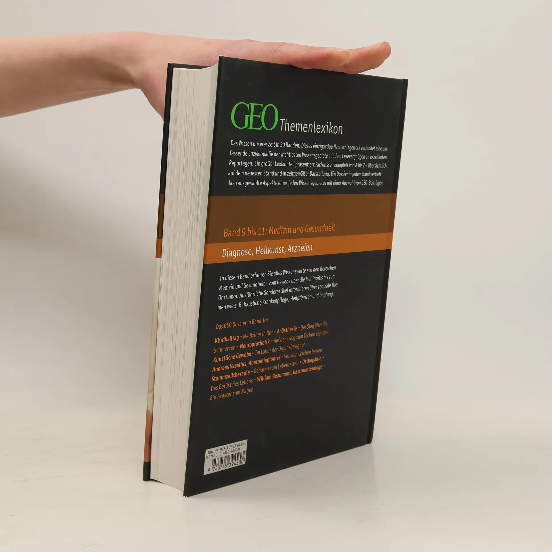 Das Wissen unserer Zeit in 20 Themenbänden: Dieses einzigartige und preisgünstige Nachschlagewerk ist eine Kooperation des Brockhaus-Verlages mit dem Wissenschaftsmagazin GEO und verbindet eine umfassende Enzyklopädie der wichtigsten Wissensgebiete mit dem Lesevergnügen an exzellenten Reportagen im GEO Dossier, das den alphabetischen Stichwortbestand eines jeden Bandes ergänzt. Die Bände 9 bis 11 beschäftigen sich mit dem Themenbereich »Medizin und Gesundheit«.