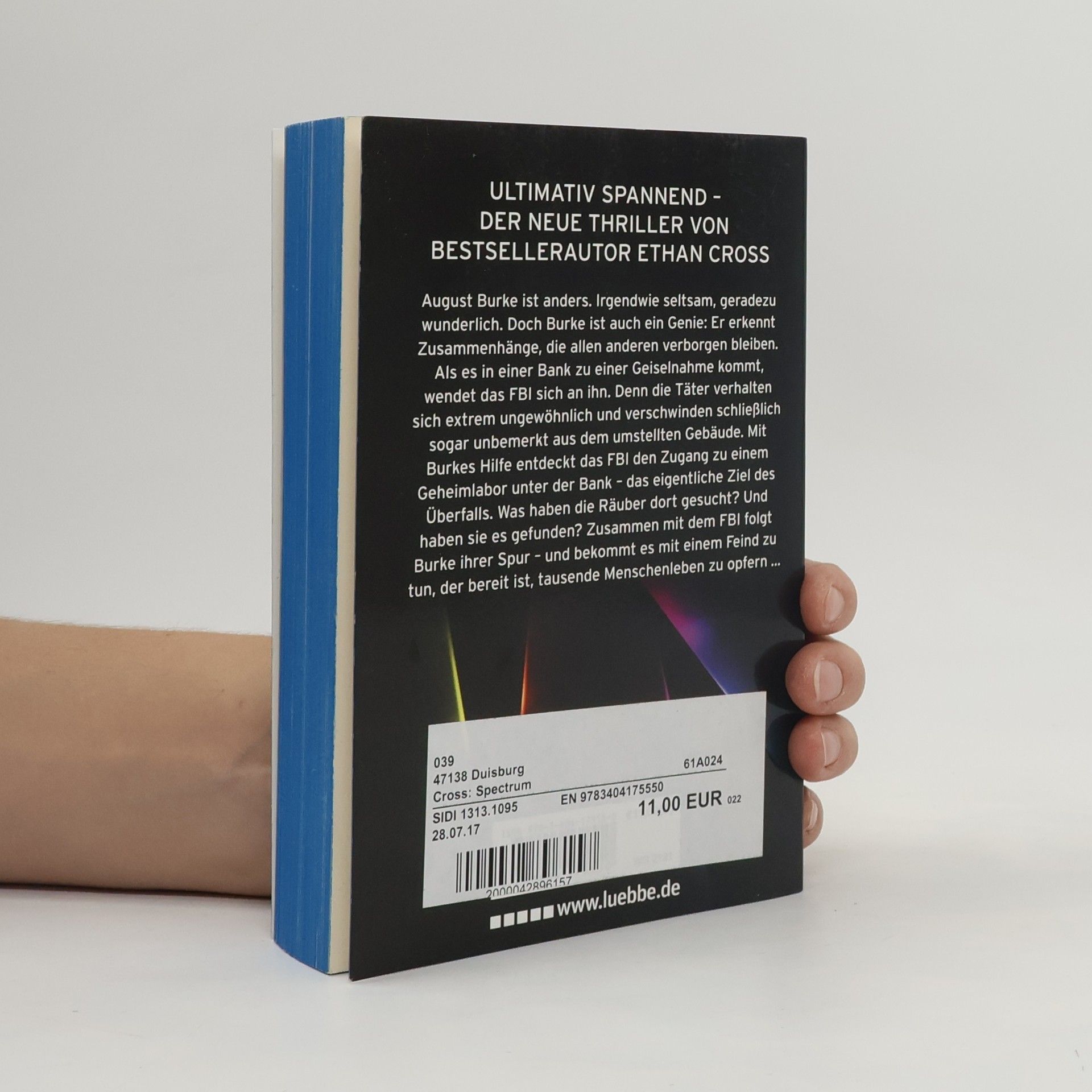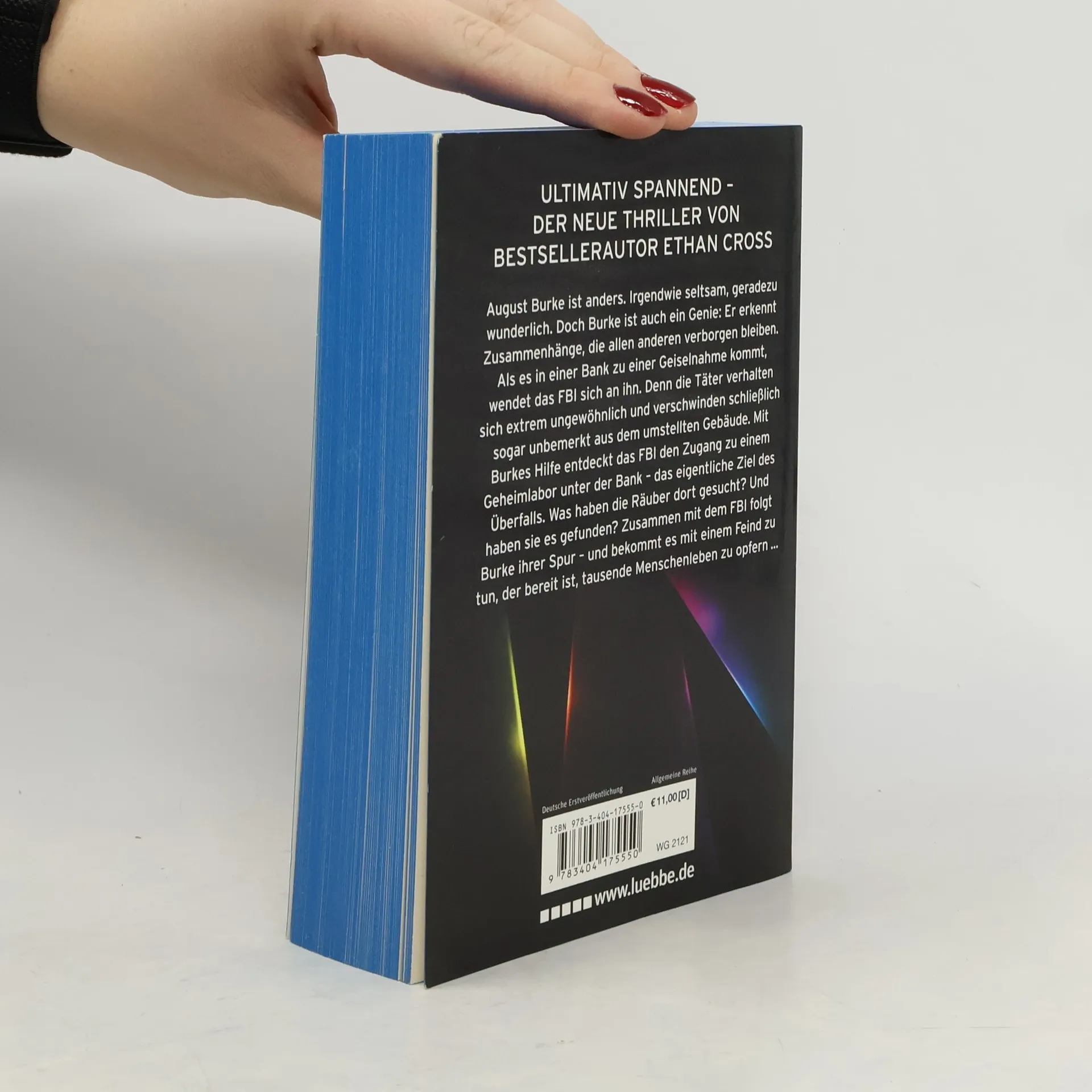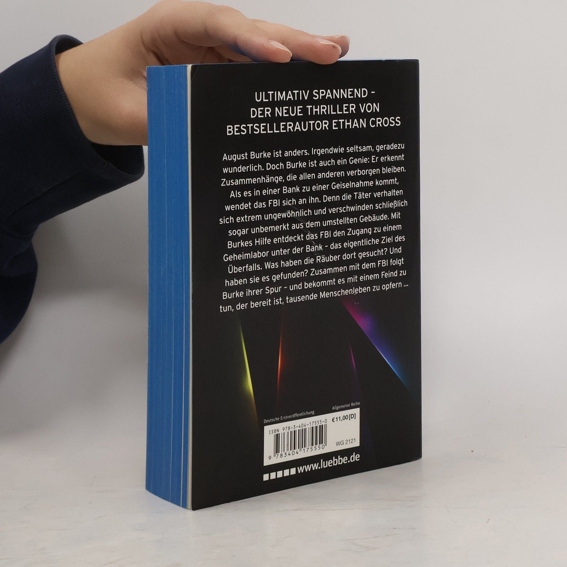 Eine neue rasante Thriller-Serie von Bestsellerautor Ethan Cross, dem Autor der Shepherd-Thriller August Burke ist anders. Irgendwie seltsam, geradezu wunderlich. Doch Burke ist auch ein Genie: Er erkennt Zusammenhänge, die allen anderen verborgen bleiben. Als es in einer Bank zu einer Geiselnahme kommt, wendet das FBI sich an ihn. Denn die Täter verhalten sich extrem ungewöhnlich und verschwinden schließlich sogar unbemerkt aus dem umstellten Gebäude. Mit Burkes Hilfe entdeckt das FBI den Zugang zu einem Geheimlabor unter der Bank - das eigentliche Ziel des Überfalls. Was haben die Räuber dort gesucht? Und haben sie es gefunden? Zusammen mit Special Agent Carter folgt Burke ihrer Spur - und bekommt es mit einem Feind zu tun, der bereit ist, tausende Menschenleben zu opfern.