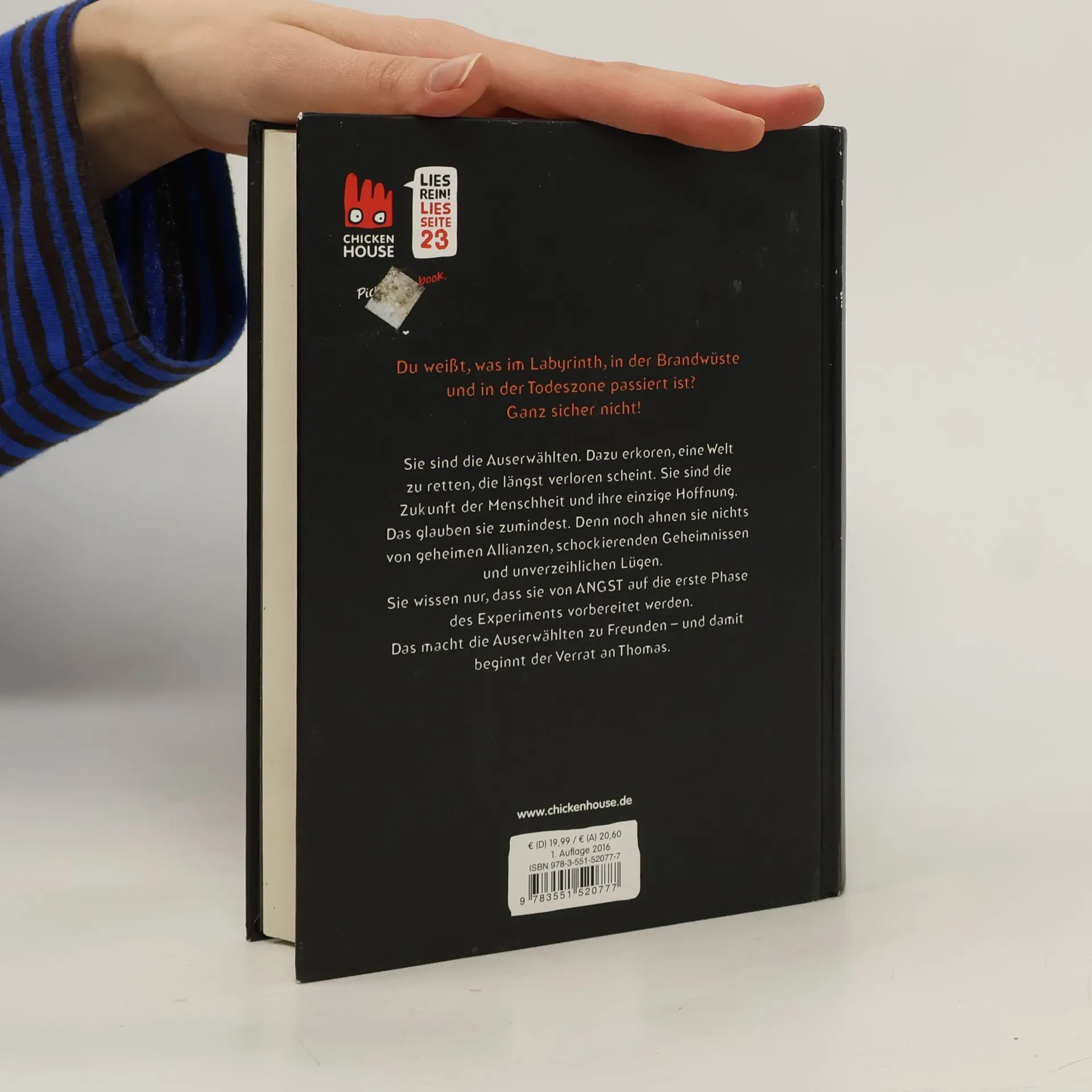 Du weißt, was im Labyrinth, in der Brandwüste und der Todeszone passiert ist? Ganz sicher nicht! Sie sind die Auserwählten. Dazu erkoren, eine Welt zu retten, die längst verloren scheint. Sie sind die Zukunft der Menschheit und ihre einzige Hoffnung. Das glauben sie zumindest. Denn noch ahnen sie nichts von geheimen Allianzen, schockierenden Geheimnissen und unverzeihlichen Lügen. Sie wissen nur, dass sie von ANGST auf die erste Phase des Experiments vorbereitet werden. Das macht die Auserwählten zu Freunden – und damit beginnt der Verrat an Thomas. Der krönende Abschluss der Bestseller-Serie! Alle Bände der weltweiten Bestseller-Serie »Maze Runner«: Die Auserwählten im Labyrinth (Band 1) Die Auserwählten in der Brandwüste (Band 2) Die Auserwählten in der Todeszone (Band 3) Die Auserwählten - Kill Order (Band 4, spielt 15 Jahre vor Band 1) Die Auserwählten - Phase Null (Band 5, spielt unmittelbar vor Band 1)