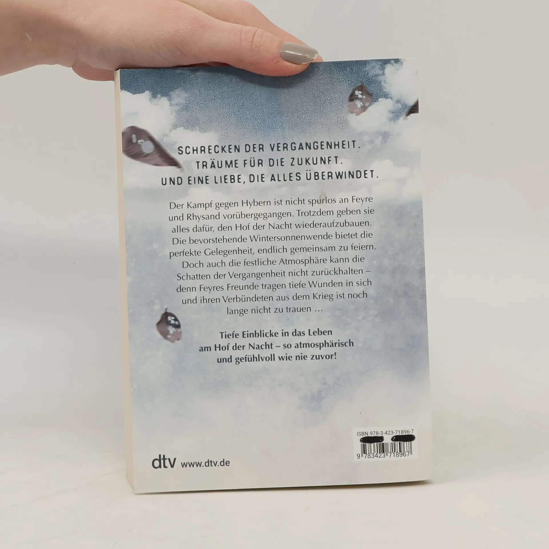 Der schreckliche Kampf gegen Hybern ist nicht spurlos an Feyre, Rhys und ihren Gefährten vorbeigegangen. Trotzdem geben sie alles dafür, den Hof der Nacht wiederaufzubauen und den unsicheren Frieden im Reich zu erhalten. Die bevorstehende Wintersonnenwende bietet die perfekte Gelegenheit, endlich abzuschalten und gemeinsam zu feiern. Doch auch die festliche Atmosphäre kann die Schatten der Vergangenheit nicht zurückhalten – denn Feyres Freunde tragen tiefe Wunden in sich und ihren Verbündeten aus dem Krieg ist noch lange nicht zu trauen.