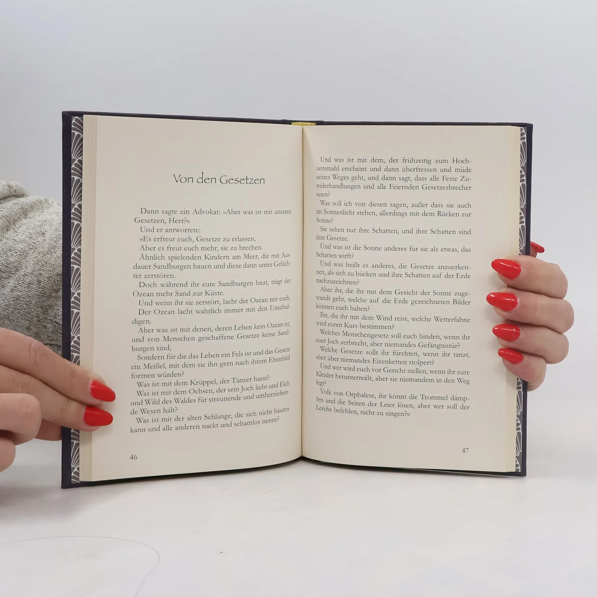 ede Generation entdeckt die Poesie und die Weisheit des Propheten neu, da er Themen unseres täglichen Lebens anspricht, wie zum Beispiel diese über die Liebe: Dann sagte Almitra: »Sprich zu uns von Liebe.« Und er hob seinen Kopf und sah auf die Menschen und Stille senkte sich über sie. Und mit lauter Stimme sprach er: »Wenn euch die Liebe winkt, dann folgt ihr, mögen ihre Wege auch schwer und steil sein. Und wenn sie ihre Schwingen ausbreitet, gib dich ihr hin, selbst wenn das unter ihrem Gefieder verborgene Schwert dich verwunden mag. Und wenn sie zu euch sagt, ihr sollt ihr glauben, Auch wenn ihre Stimme eure Träume zerschmettert, wie der Nordwind euren Garten verwüstet. Denn so wie die Liebe euch krönt, so wird sie euch kreuzigen. So wie sie euch wachsen lässt, so beschneidet sie euch.«