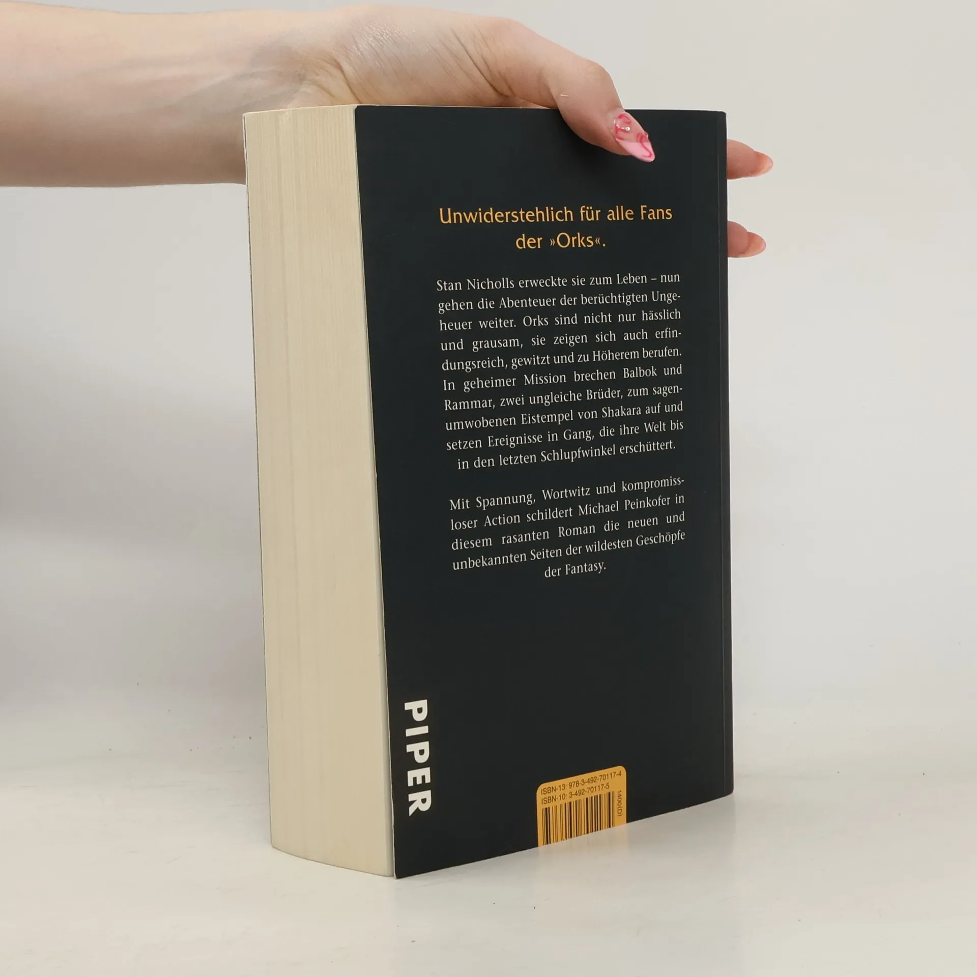 Michael Peinkofer erweckt die Orks zum Leben und beschreibt Mittelerdes wildeste Geschöpfe noch plastischer und lebendiger als J. R. R. Tolkien selbst. Dass Orks zwar hässlich und grausam, aber auch erfindungsreich, gewitzt und bisweilen sogar zu Höherem berufen sind – das beweist der junge Bestsellerautor mit diesem Roman. Er knüpft nicht nur an den überwältigenden Erfolg seines Vorbilds an, sondern webt die Geschichte der vierschrötigen Ungeheuer auch weiter. In geheimer Mission brechen Balbok und Rammar, zwei ungleiche Brüder, zum sagenumwobenen Eistempel von Shakara auf. Damit beginnt ein Abenteuer, das ihre gesamte Welt erschüttert und das Spannung, Action und trockenen Witz in sich vereint. Mit diesem rasanten Ork-Thriller stellt Peinkofer sein großartiges erzählerisches Können unter Beweis.