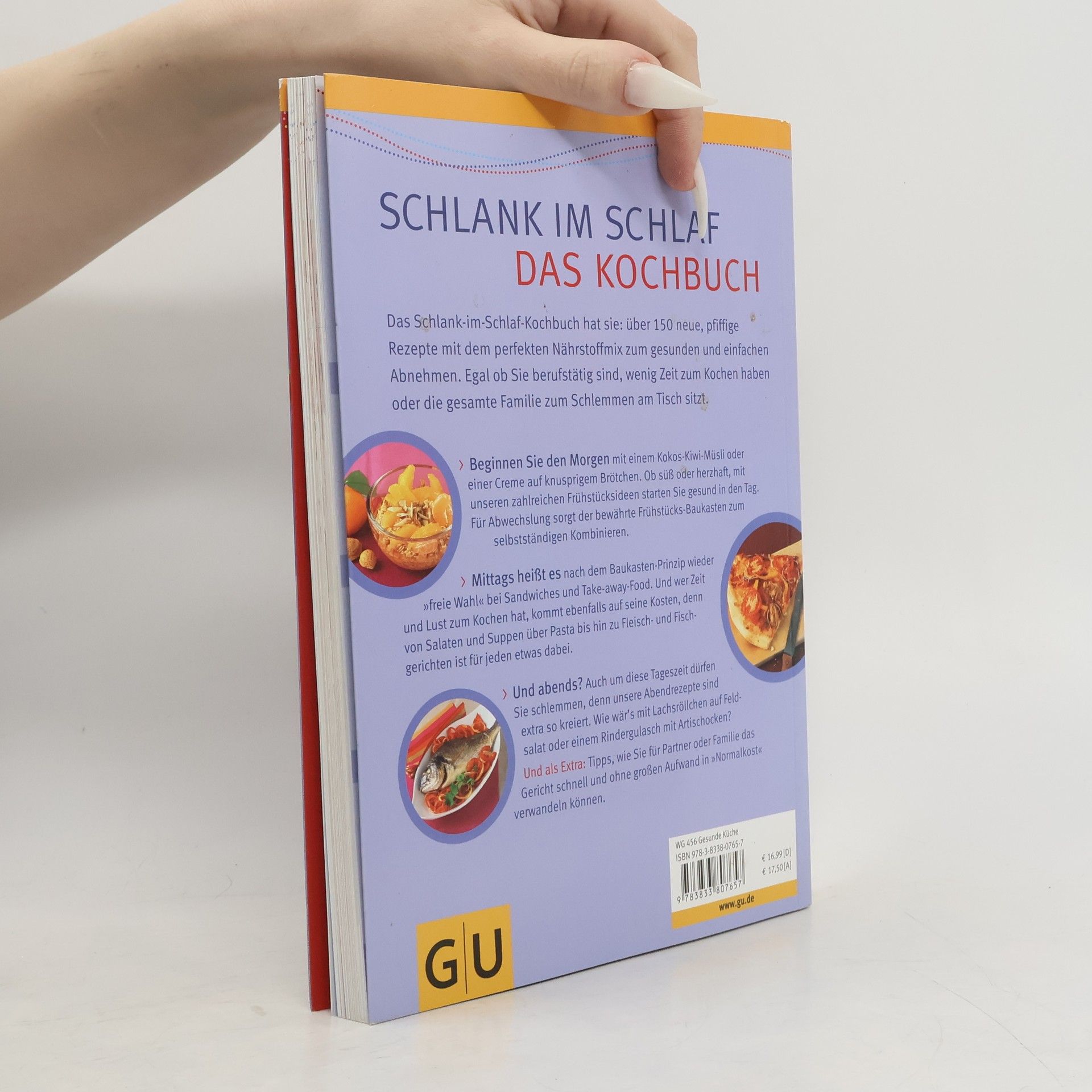 Sie leben nach diesem Prinzip und sind auf der Suche nach neuen Rezepten? Das Schlank-im-Schlaf-Kochbuch hat sie: Rezepte mit dem perfekten Nährstoffmix, zum gesunden und einfachen Abnehmen. Egal ob Sie berufstätig sind, wenig Zeit zum Kochen haben, oder die gesamte Familie zum Schlemmen am Tisch sitzt. Ob süss der herzhaft, mit unseren zahlreichen Frühstücksideen starten Sie gesund in den Tag. Für Abwechslung sorgt der bewährte Frühstücks-Baukasten zum selbstständigen Kombinieren. Mittags heißt es freie Wahl bei Sandwiches und Take-away-Food. Und wer Zeit und Lust zum Kochen hat, kommt ebenfalls auf seine Kosten, denn von Suppen über Eintöpfe bis hin zu Nudel-, Fleisch- und Fischgerichten, ist für jeden etwas dabei. Und auch abends dürfen Sie schlemmen. Wie wär's mit Rotbarsch auf Sellerie-Basilikum-Püree oder einem Rindergulasch mit Artischocken? Und als Extra: Tipps, wie Sie für Partner oder Familie das Gericht schnell und ohne großen Aufwand in „Normalkost“ verwandeln können.