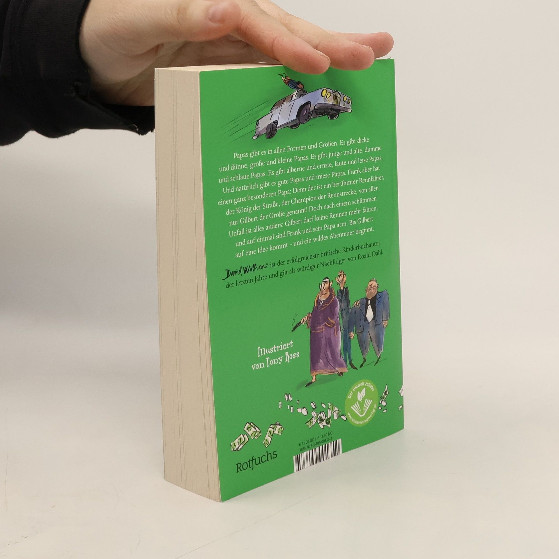 Papas gibt es in allen Formen und Größen – es gibt dicke und dünne, große und kleine, dumme und schlaue, laute und leise Papas. Aber keiner ist so wie Franks Papa Gilbert. Denn der ist ein berühmter Rennfahrer, der König der Straße, der Champion der Rennstrecke, von allen nur Gilbert der Große genannt! Doch nach einem schlimmen Unfall ist alles anders: Papa darf keine Rennen mehr fahren, und auf einmal sind Frank und Gilbert arm. Nachdem sie alle Möbel verpfändet haben, beschließt Papa in seiner Verzweiflung, das Fluchtauto bei einem Raubüberfall zu fahren, den der schreckliche Verbrecherboss Mr. Big und seine trotteligen Helfer Finger und Däumling planen. Doch er hat nicht mit seinem Sohn gerechnet: Frank ist wild entschlossen, seinen Vater davon abzuhalten, ein Banditen-Papa zu werden!