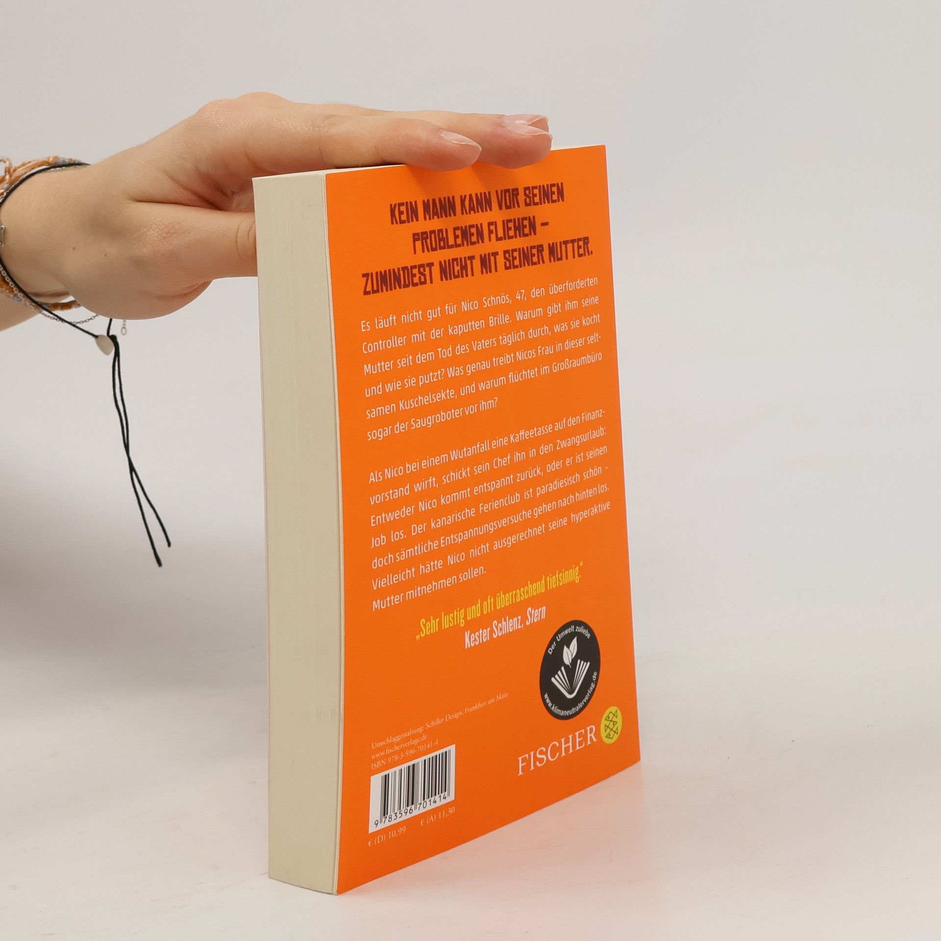 Kein Mann kann vor seinen Problemen fliehen – zumindest nicht mit seiner Mutter. Es läuft nicht gut für Nico Schnös, 47, den überforderten Controller mit der kaputten Brille. Warum gibt ihm seine Mutter seit dem Tod des Vaters täglich durch, was sie kocht und wie sie putzt? Was genau treibt Nicos Frau in dieser seltsamen Kuschelsekte, und warum flüchtet im Großraumbüro sogar der Saugroboter vor ihm? Als er bei einem Wutanfall eine Kaffeetasse auf den Finanzvorstand wirft, schickt sein Chef ihn in den Zwangsurlaub: Entweder Nico kommt entspannt zurück, oder er ist seinen Job los. Der kanarische Ferienclub ist paradiesisch schön – doch sämtliche Entspannungsversuche gehen nach hinten los. Vielleicht hätte Nico nicht ausgerechnet seine hyperaktive Mutter mitnehmen sollen: »Eine Zimmerkarte reicht, mein Sohn und ich machen eh alles zusammen!« Bald schon ahnt Nico: Paradies und Hölle können sehr nah beieinander liegen. Der Roman für alle, die schon mal mit ihren Eltern im Urlaub waren.