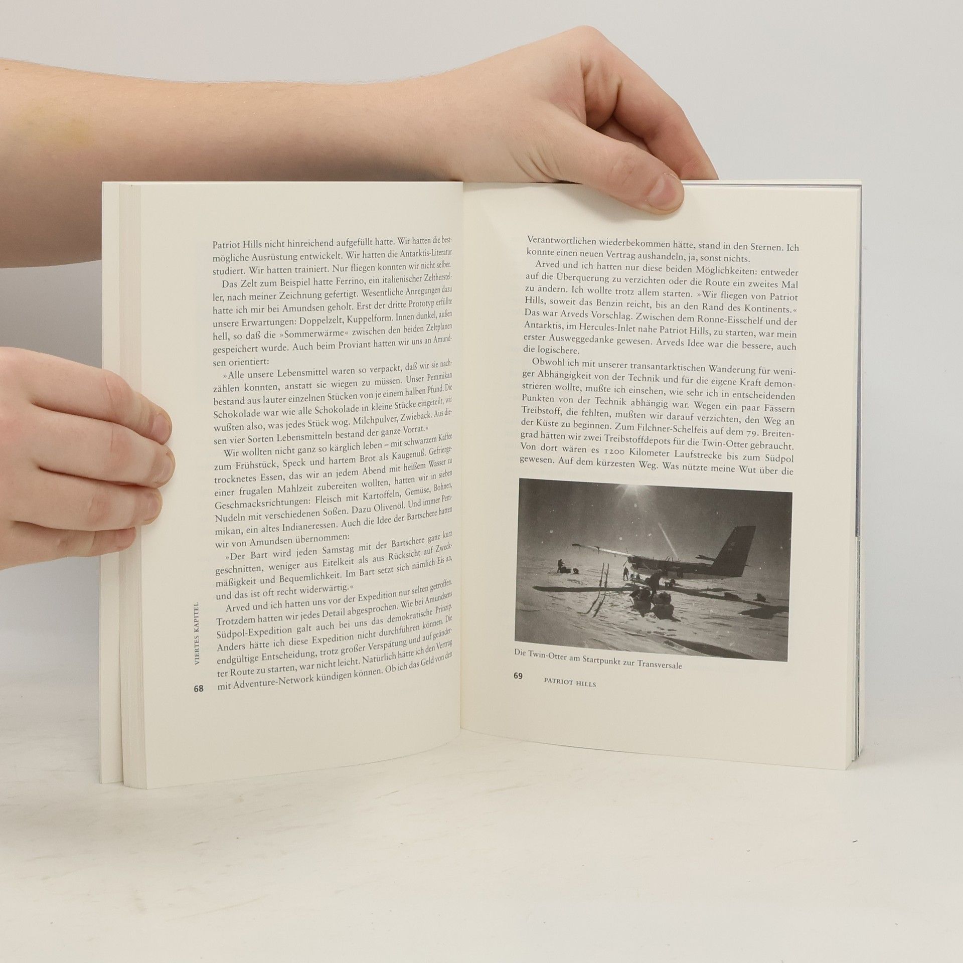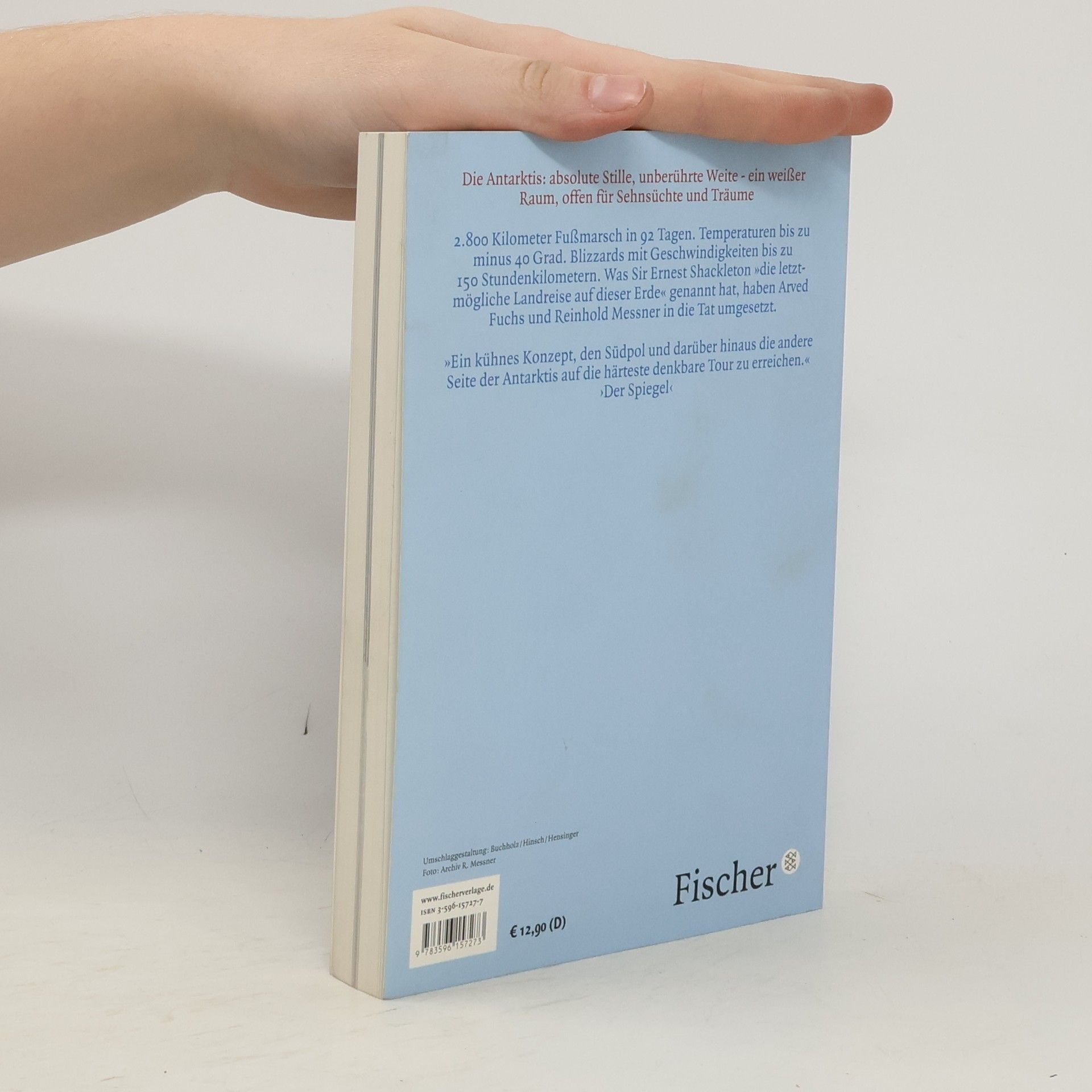 2800 Kilometer Fußmarsch in 92 Tagen. Temperaturen bis zu minus 40°. Blizzards mit Geschwindigkeiten bis zu 150 Stundenkilometern. Was Sir Ernest Shackleton, der 1914 schon bei dem Versuch scheiterte, die Antarktis zu überqueren, „die letztmögliche Landreise auf dieser Erde“ genannt hat, haben Arved Fuchs und Reinhold Messner zwischen dem 13.11.1989 und dem 12.2.1990 in die Tat umgesetzt - eine Durchquerung vom Rand des antarktischen Kontinents über die Thiel-Berge zum Südpol und von dort zur McMurdo-Bucht am Ross-Meer, von wo die Expedition Robert F. Scotts gestartet war, die ein so tragisches Ende nahm. „Messners Vorhaben ist es, durch die Reise in die Antarktis der absoluten Stille und unberührten Weite wieder einen Ort im Bewusstsein des gestressten Menschen zu verschaffen, einen weißen Raum, unendlich weit offen für Sehnsüchte, Träume und Phantasien.“ (Wilhelm Schmid)