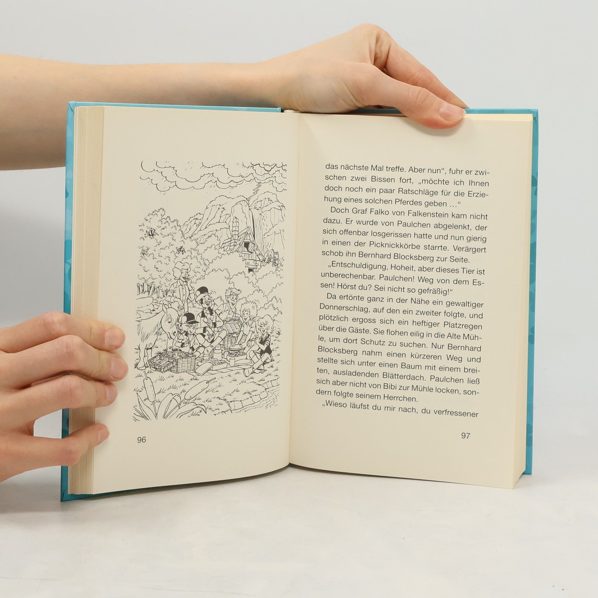 Die beiden Freundinnen Bibi und Tina finden Ponys einfach toll! Als Bernhard Blocksberg bei einem Preisausschreiben ein Pony gewinnt, ist Bibi völlig aus dem Häuschen. In seinem neuen Zuhause, dem Martinshof, stellt Pony Paulchen allerdings eine Menge Unsinn an. Auch das Pony Knuddel sorgt für ganz schön viel Aufregung, als es plötzlich auf geheimnisvolle Weise aus seiner Box verschwindet. Und dafür, dass Pony Melinda wieder gesund wird, müssen Bibi und Tina ziemlich kämpfen … Enthält die Einzelbände: Papis Pony (Band 11) Alle lieben Knuddel (Band 13) Der Pferdegeburtstag (Band 17)
