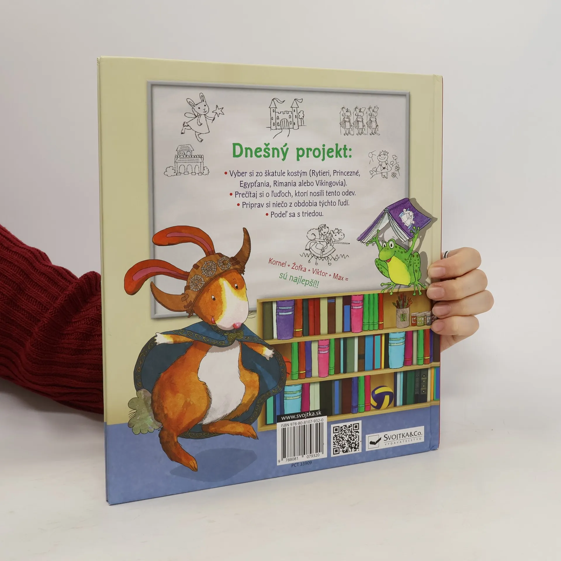 Som králiček Kornel a chodím do školy. Jedného dňa priniesla pani učiteľka škatuľu historických kostýmov. Presvedčí vás tento príbeh, že aj história môže byť zábavná? Jedného dňa prídu králiček Kornel a jeho priatelia Max, Viktor a Žofka do školy a pani učiteľka má pri stole veľkú škatuľu historických kostýmov. Každý z nich si má vybrať jeden, nájsť čo najviac informácií o tom, za koho sa prezlečie, vyrobiť si nejakú vec z toho obdobia a nakoniec svojim spolužiakom o ňom aj porozprávať. Za koho sa králiček a jeho kamaráti prezlečú a o kom vám budú rozprávať? Stanú sa starovekými Egypťanmi, princeznou, rytierom alebo Vikingom? Presvedčí vás tento milý príbeh o tom, že aj história môže byť zábavná?