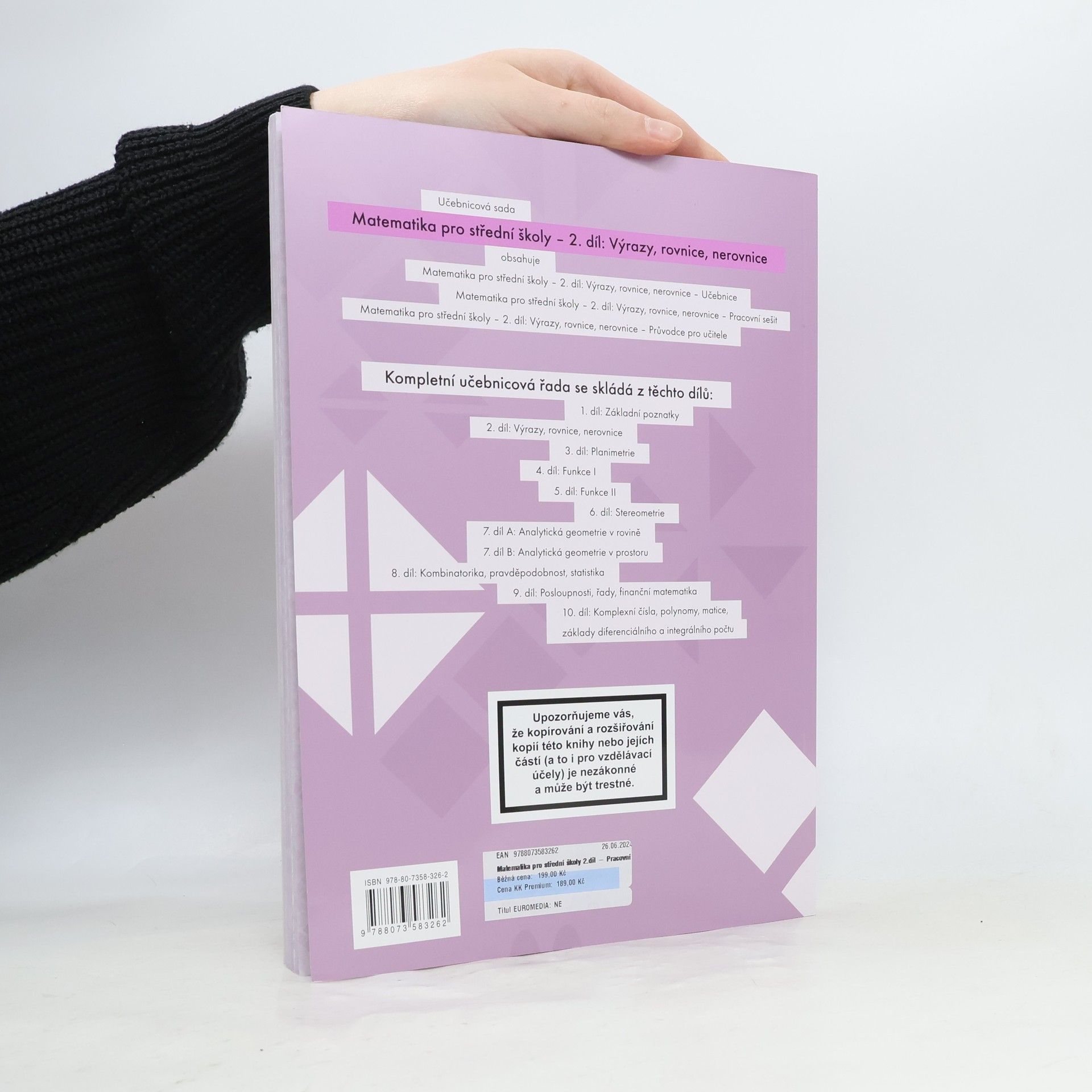 Učebnice matematiky je propojena s přehledně zpracovaným pracovním sešitem – každé kapitole v učebnici odpovídá příslušná kapitola v pracovním sešitě. Ke každému tématu náleží tři úrovně úkolů vytvořených podle Bloomovy taxonomie vzdělávacích cílů. Obtížnost zadaných cvičení roste postupně, čímž je umožněno dosáhnout úspěchu všem studentům.…