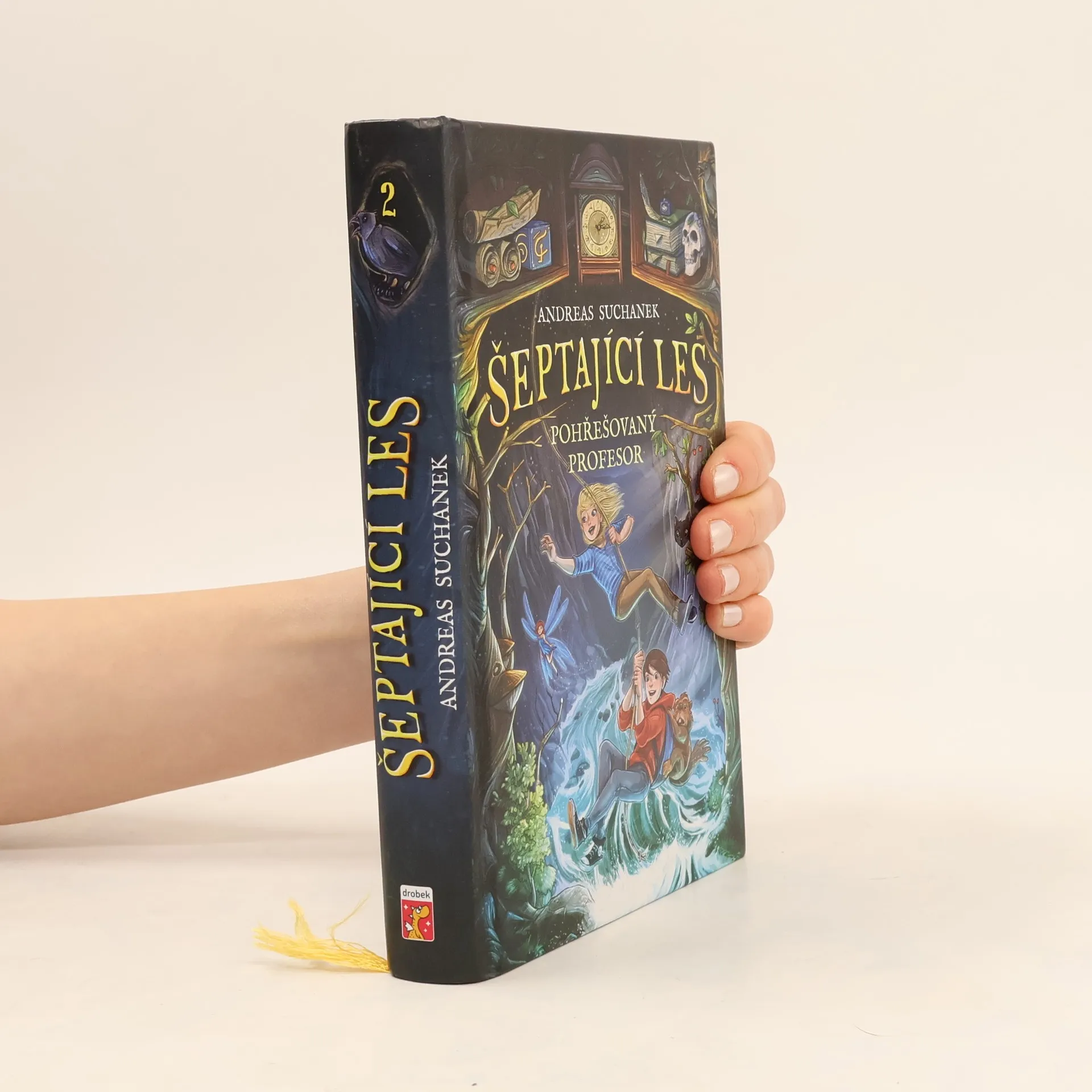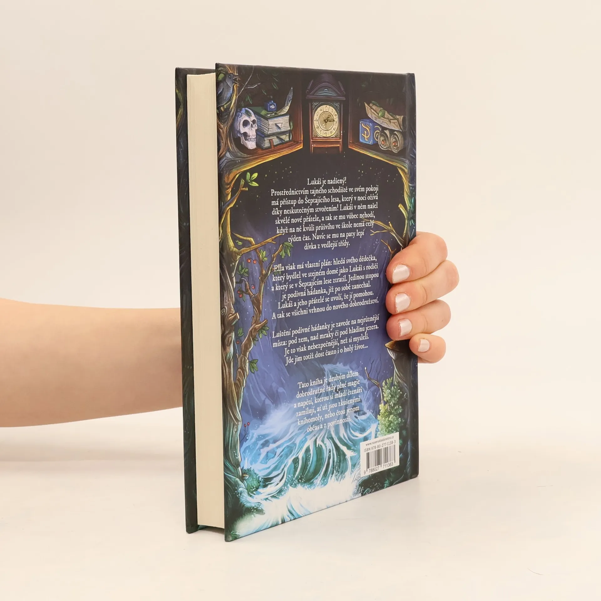 Lukáš je nadšený: Prostřednictvím tajného schodiště ve svém pokoji má přístup do Šeptajícího lesa, který v noci ožívá díky neskutečným stvořením! Lukáš v něm našel skvělé nové přátele, a tak se mu vůbec nehodí, když na ně kvůli průšvihu ve škole nemá celý týden čas. Navíc se mu na paty lepí dívka z vedlejší třídy.Ella však má vlastní plán: hledá svého dědečka, který bydlel ve stejném domě jako Lukáš s rodiči a který se v Šeptajícím lese ztratil. Jedinou stopou je podivná hádanka, kterou po sobě zanechal. Lukáš a jeho přátelé se uvolí, že jí pomohou. A tak se všichni po hlavě vrhnou do nového dobrodružství.Luštění podivné hádanky je zavede na nejrůznější místa: pod zem, nad mraky či pod hladinu jezera. Je to však nebezpečnější, než si mysleli... Jde jim totiž dost často i o holý život.