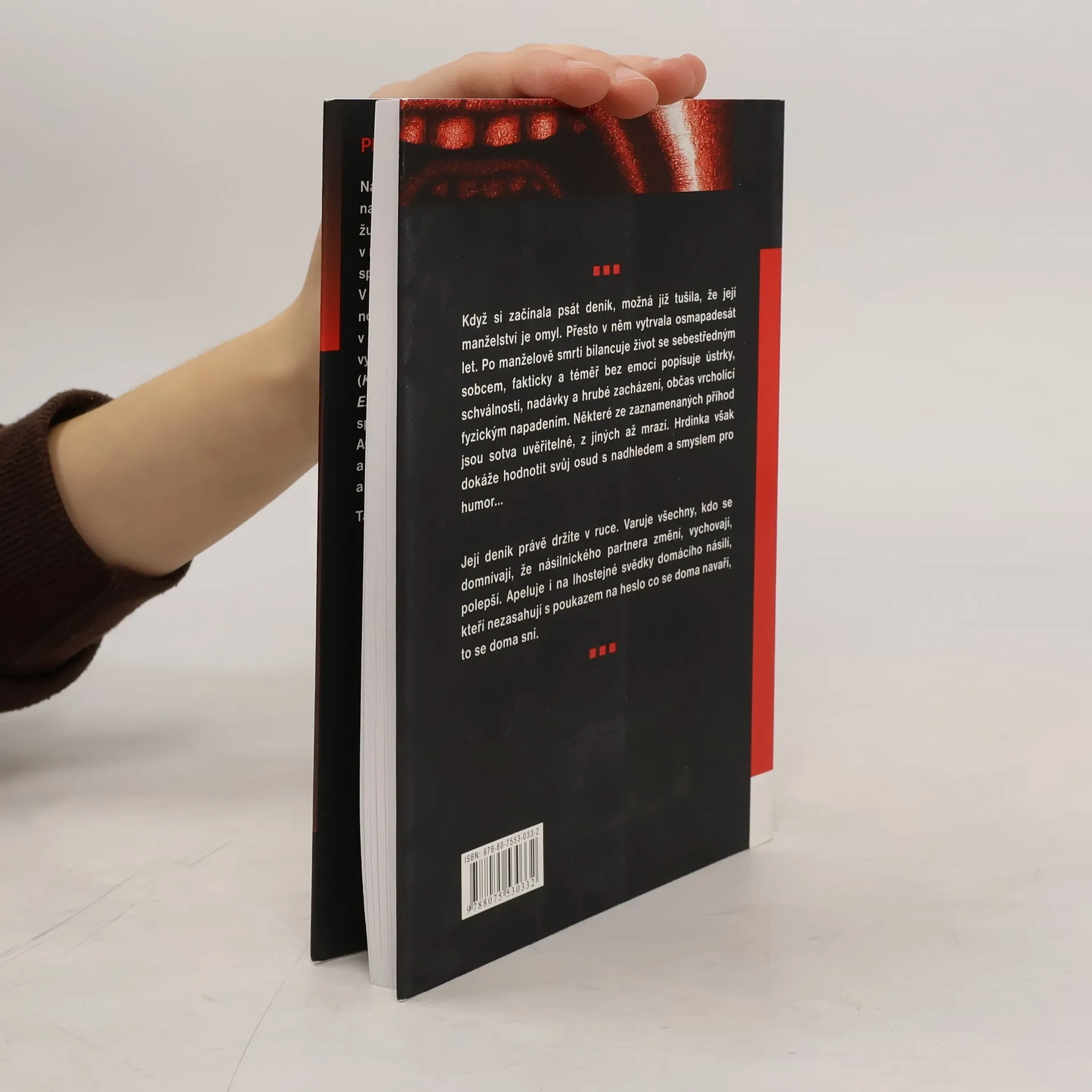 Když si začínala psát deník, možná již tušila, že její manželství je omyl. Přesto v něm vytrvala osmapadesát let. Po manželově smrti bilancuje život se sebestředným sobcem, fakticky a téměř bez emocí popisuje ústrky, schválnosti, nadávky a hrubé zacházení, občas vrcholící fyzickým napadením. Některé ze zaznamenaných příhod jsou sotva uvěřitelné, z jiných až mrazí. Hrdinka však dokáže hodnotit svůj osud s nadhledem a smyslem pro humor... Její deník právě držíte v ruce. Varuje všechny, kdo se domnívají, že násilnického partnera změní, vychovají, polepší. Apeluje i na lhostejné svědky domácího násilí, kteří nezasahují s poukazem na heslo co se doma navaří, to se doma sní.