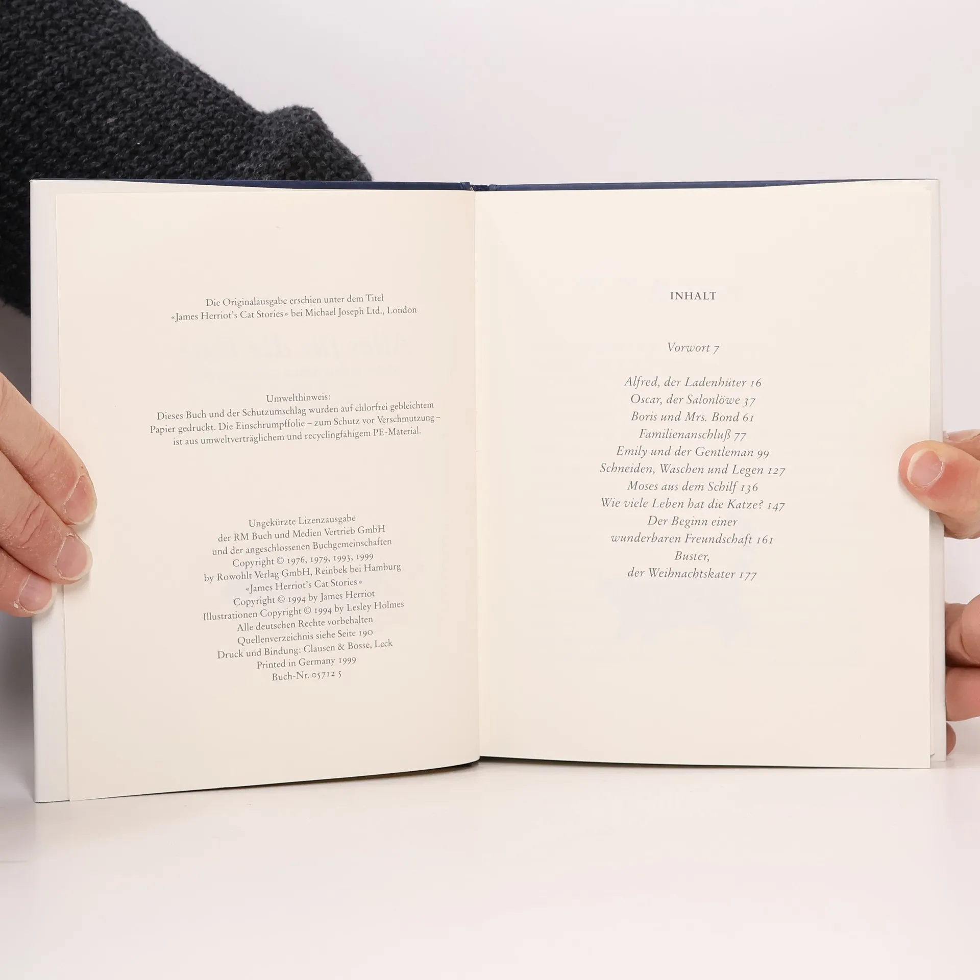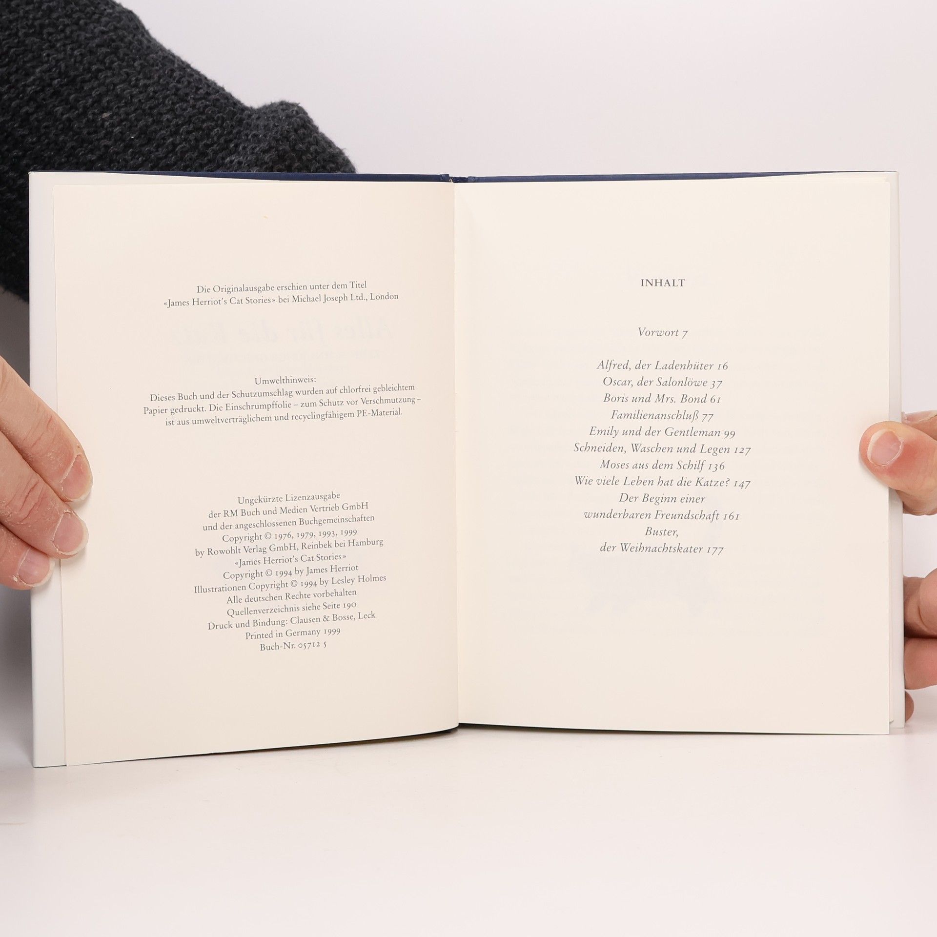 Die schönsten Katzengeschichten des berühmten englischen Tierarztes, der mit seinen Büchern auch in Deutschland die Bestsellerlisten eroberte. Wer Herriots Erzählungen liebt, wird hier alte Bekannte wiedertreffen und neue Freunde gewinnen: Etwa Oskar, den getigerten Kater, der gern mal auf einen Schluck Bier in die Dorfkneipe einkehrt, das Kätzchen Moses, das im Schilf gefunden wurde und sein Herz an ein Schwein verschenkt, die elegante, weißpfotige Emily, die mit einem aristokratischen Tramp über die Landstraßen flaniert, oder den klugen Alfred, der dafür sorgt, daß in Herrchens Süßwarenladen das Geschäft läuft. Die Menschlichkeit und der Humor, die aus jeder Zeile seiner Bücher sprechen, und das tiefe Mitgefühl mit seinen vierbeinigen Patienten haben Herriot zu einem weltweit erfolgreichen Erzähler gemacht. Schön gestaltet und von der englischen Malerin Lesley Holmes liebevoll illustriert, ist dieses Buch eine wunderbare Lektüre für alle Katzenfreunde.