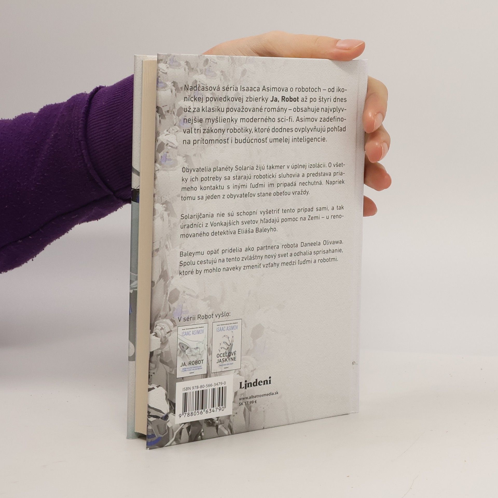 Vražda, detektív, ktorému nič neunikne, roboti a to všetko v nadsvetelnom tempe! Pokračovanie obľúbenej sci-fi série Isaaca Asimova.Nadčasová séria Isaaca Asimova o robotoch – od ikonickej poviedkovej zbierky Ja, Robot až po štyri dnes už za klasiku považované romány – obsahuje najvplyvnejšie myšlienky moderného sci-fi. Zadefinovali tri zákony robotiky, ktoré dodnes ovplyvňujú pohľad na prítomnosť i budúcnosť umelej inteligencie. Obyvatelia planéty Solaria žijú takmer v úplnej izolácii. O všetky ich potreby sa starajú robotickí sluhovia a predstava priameho kontaktu s inými ľuďmi im pripadá nechutná. Napriek tomu sa jeden z obyvateľov stane obeťou vraždy. Solarijčania nie sú schopní vyšetriť tento prípad sami, a tak úradníci z Vonkajších svetov hľadajú pomoc na Zemi – u renomovaného detektíva Eliáša Baleyho. Baleymu opäť pridelia ako partnera robota Daneela Olivawa. Spolu cestujú na tento zvláštny nový svet a odhalia sprisahanie, ktoré by mohlo naveky zmeniť vzťahy medzi ľuďmi a robotmi.