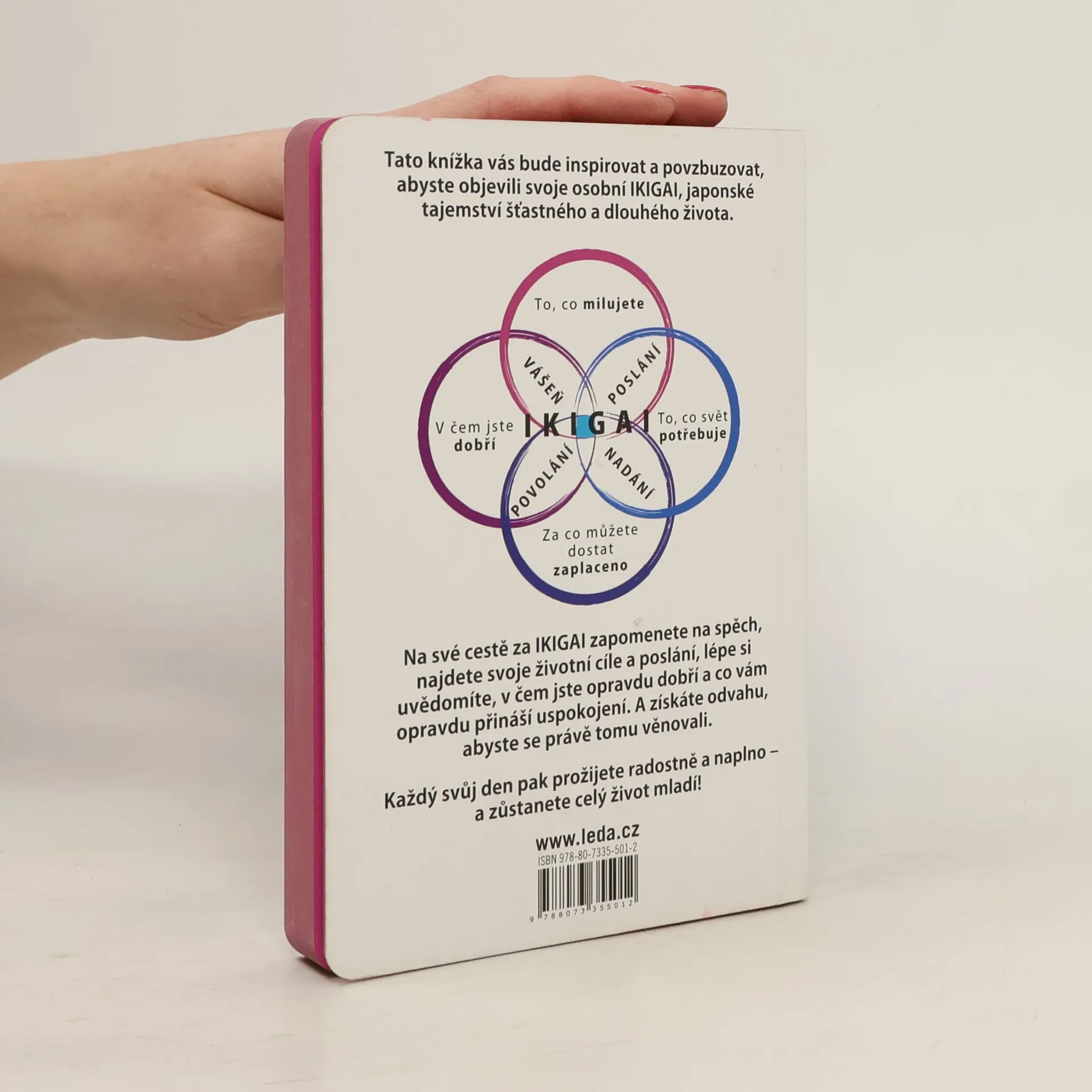 Tato knížka vás bude inspirovat a povzbuzovat, abyste objevili svoje osobní IKIGAI, japonské tajemství dlouhého a šťastného života. Nabídne vám cestu, na které zapomenete na spěch, najdete svoje životní cíle a poslání, lépe si uvědomíte, v čem jste opravdu dobří a co vám opravdu přináší uspokojení. A najdete odvahu, abyste se právě tomu věnovali. Každý svůj den pak prožijete radostně a naplno – a zůstanete celý život mladí!