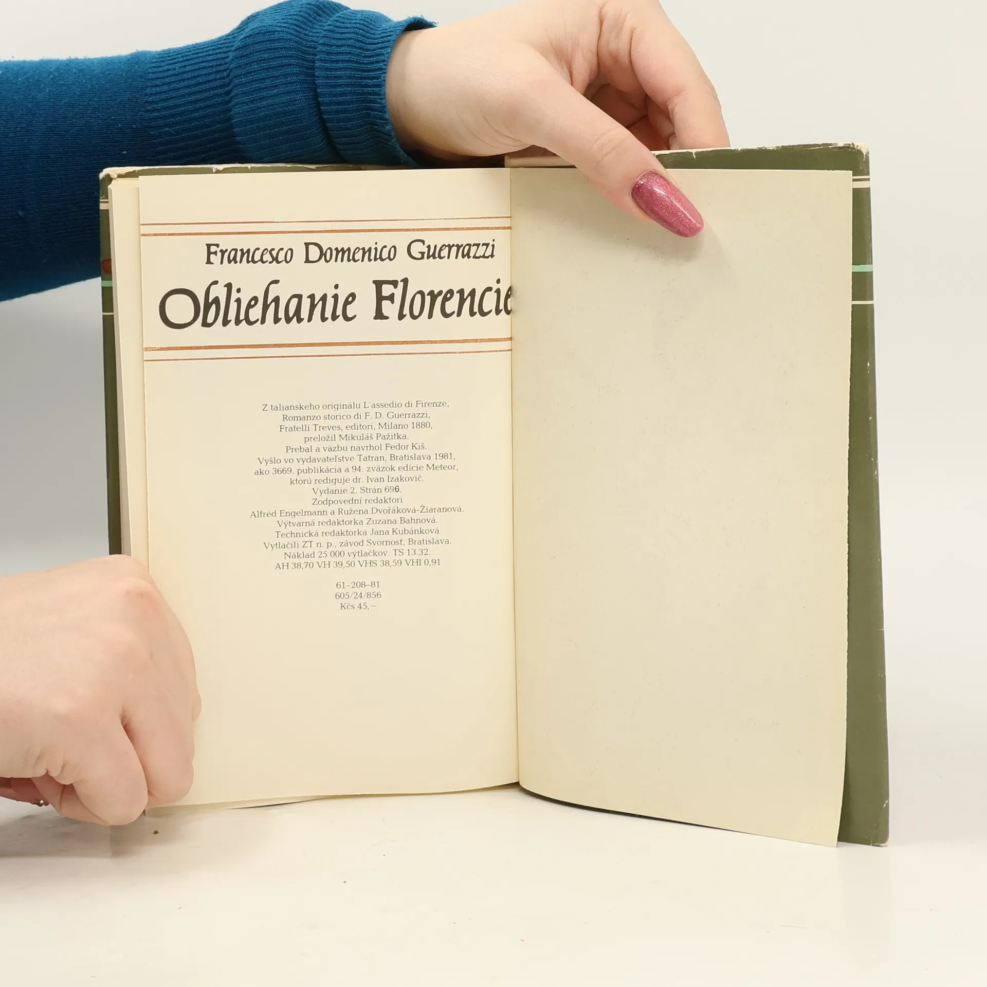Obliehanie Florencie patrí medzi najpopulárnejšie historické romány talianskeho Obrodenia. Vystupuje pred čitateľom celá plejáda slávnych postáv, stretáva sa s florentským sekretárom Machiavellim, stretne sa s pápežom Giuliom, ktorí ako Klement narobil toľko škôd Florencii i celému Taliansku.2. slovenské vydanie.