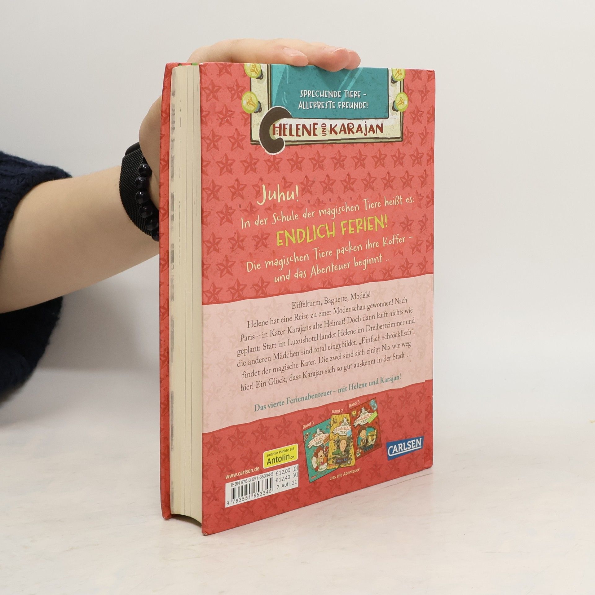 Jetzt kostenlos herunterladen - die App zur Serie! *** *** Auf in die Ferien – mit einem magischen, sprechenden Tier! *** BAND 4: Bonjour, Paris! Helene hat eine Reise zu einer Modenschau gewonnen! Nach Paris – in Kater Karajans alter Heimat! Doch dann läuft nichts wie geplant: Helene landet im Dreibettzimmer statt im Luxushotel und die anderen Mädchen sind total eingebildet. „Einfach schröcklisch“, findet der magische Kater. Die zwei sind sich einig: Nix wie weg hier! Ein Glück, dass Karajan sich so gut auskennt in der Stadt ... DIE SCHULE DER MAGISCHEN TIERE - Endlich Ferien: In der Schule der magischen Tiere heißt es: Endlich Ferien! Die magischen Tiere packen ihre Koffer – und das Abenteuer beginnt … Ein spannender Ferienkrimi in kurzen Kapiteln – mit echtem magischem Tier. *** Perfekt für die Sommerferien! ***