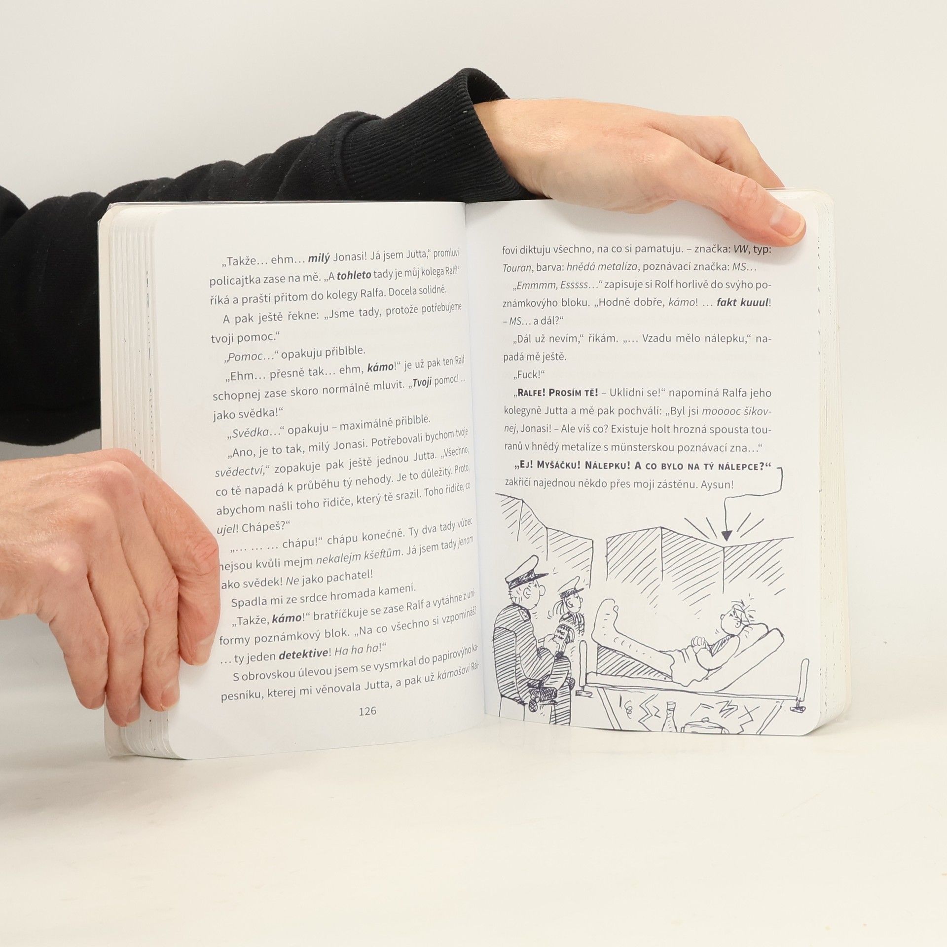 Trochu pochroumaný, brutálně ulítlý a šíleně praštěný - zkrátka fakt hustý! Divoce bláznivý a graficky velmi přesný, naprosto "hustý" nemocniční příběh, v němž nechybí tři bláznivé (v lepším případě) spolupacientky, iPhone, záhadné SMSky, zlomená noha, doktoři a policajti. Barvitě okomentovaný příběh jednoho puberťáka, jehož vynucený pobyt v nemocnici pobaví úplně každého, především ale jeho vrstevníky školou povinné, kteří v knížce naleznou četné inspirace pro přežití v jakékoliv situaci.