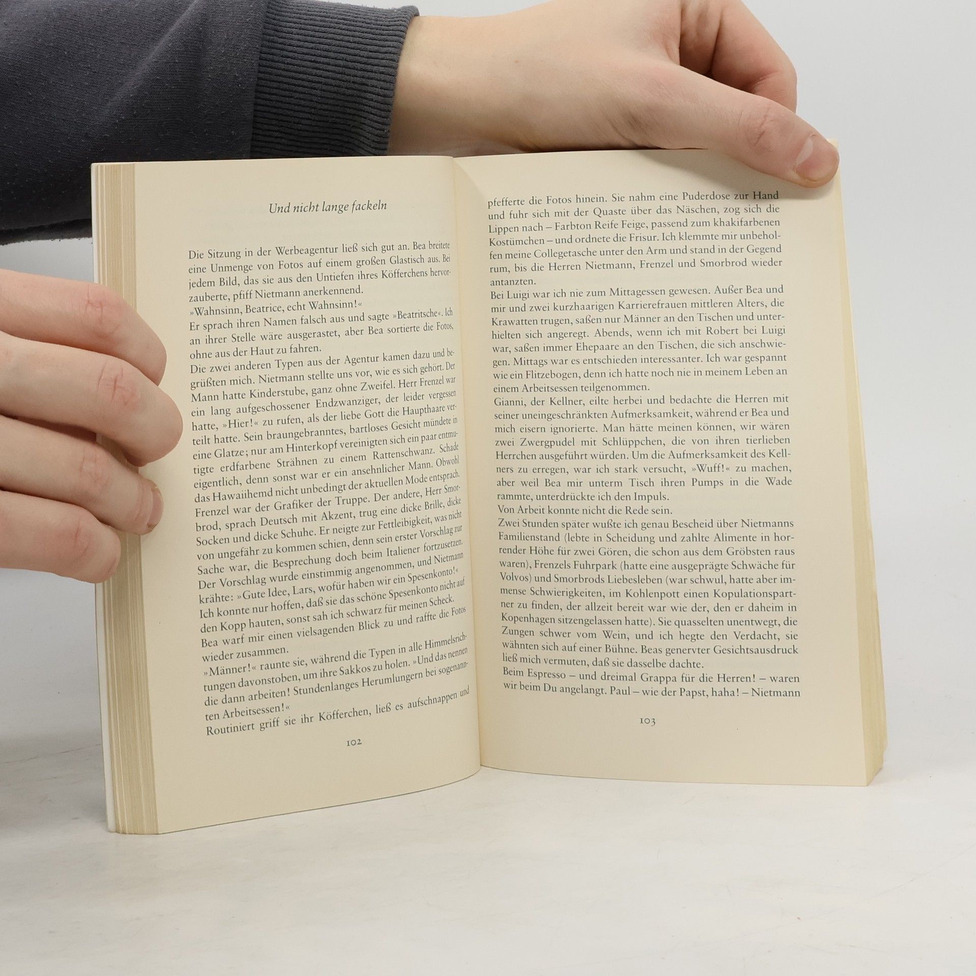 Ihren Gatten, den zähen Zahnklempner, würde Elisabeth am liebsten umtauschen. Seine Mama würde ihn auch bestimmt zurücknehmen. Solche Gedankenspielereien bringen sie auf die Idee, sich einen Mann für gewisse Stunden zu suchen, einen Mann für eine Nacht. Oder für einen Sommer. Oder überhaupt? Auf jeden Fall soll es mal wieder richtig prickeln! Während Elisabeth die Kleinanzeigen des „City Journals“ nach potentiellen Lovern durchforstet, rettet der ahnungslose Gatte tagsüber seine Patienten vor dem Zahnverfall und parkt sich abends vor der Glotze ein, um dem Sendeschluß entgegenzudösen. Dummerweise entpuppen sich die Männer, die sie auftut, als Mamasöhnchen oder Mimöschen, als Machos oder Monster. Als sie kurz vorm Aufgeben mit einer Grippe daniederliegt, läßt sie die Annonce eines Prachtexemplars schlagartig gesunden. Sie macht sich auf zu ihrem letzten blind date.