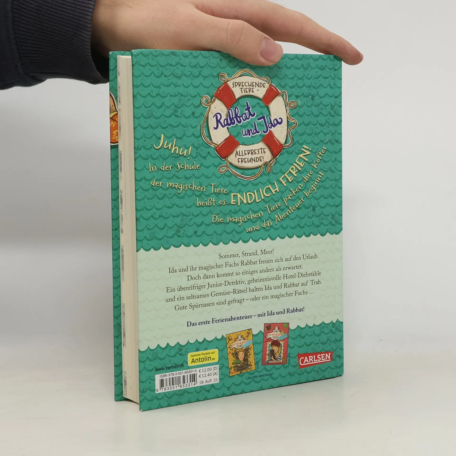 Auf in die Ferien - mit einem magischen, sprechenden Tier! *** Sommer, Strand, Meer! Ida und ihr magischer Fuchs Rabbat freuen sich auf den Urlaub. Doch dann kommt so einiges anders als erwartet. Ein übereifriger Junior-Detektiv, geheimnisvolle Hotel-Diebstähle und ein seltsames Gemüse-Rätsel halten Ida und Rabbat auf Trab. Gute Spürnasen sind gefragt – oder ein magischer Fuchs … *** DIE SCHULE DER MAGISCHEN TIERE - Endlich Ferien Band 1: In der Schule der magischen Tiere heißt es: Endlich Ferien! Die magischen Tiere packen ihre Koffer – und das Abenteuer beginnt … Ein spannender Ferienkrimi in kurzen Kapiteln - mit echtem magischem Tier. Viel Spaß mit dem ersten Ferienabenteuer der Bestseller-Reihe!