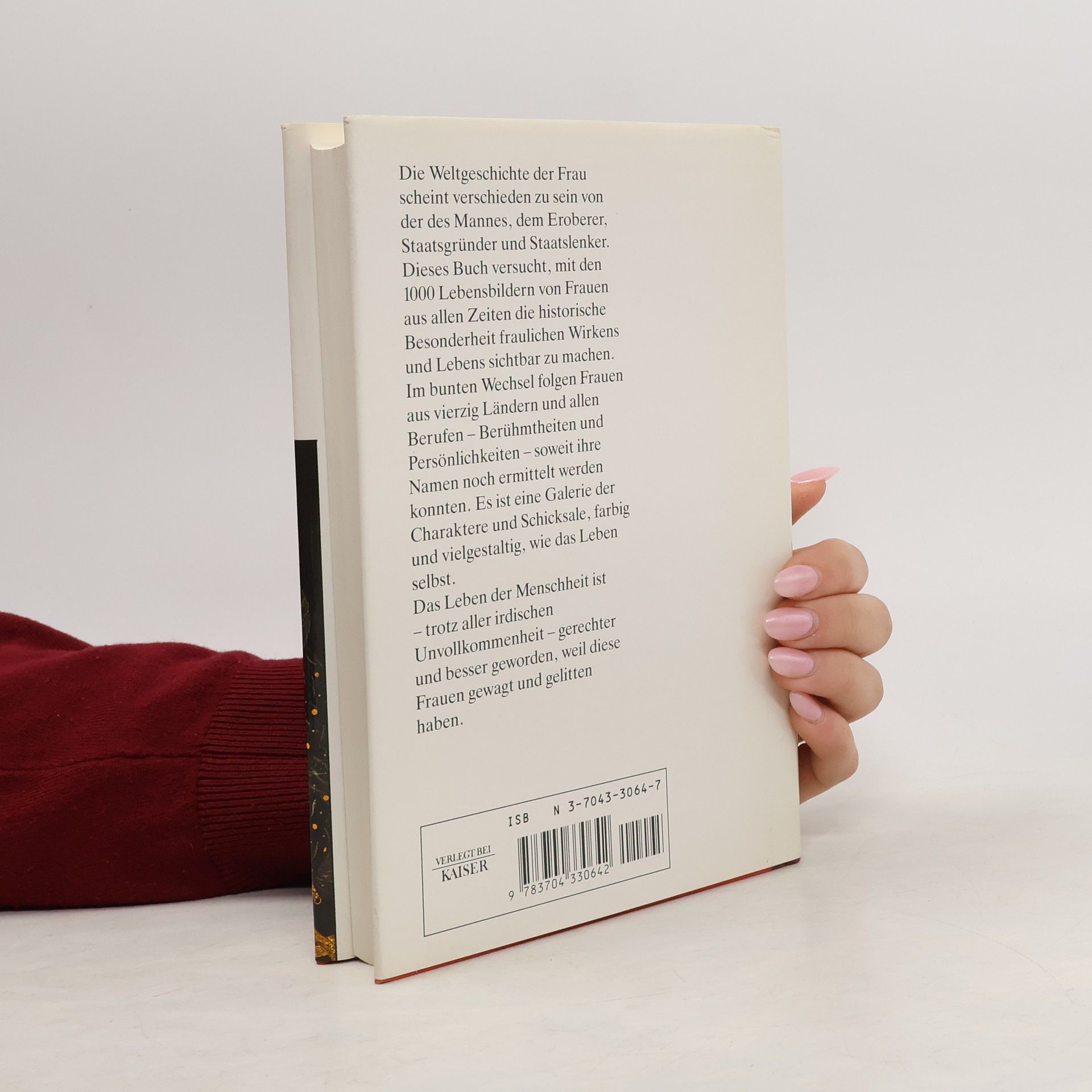 Die Weltgeschichte der Frau scheint verschieden zu sein von der des Mannes, dem Eroberer, Staatsgründer und Staatslenker. Dieses Buch versucht, mit den tausend Lebensbildern von Frauen aus allen Zeiten die historische Besonderheit fraulichen Wirkens und Lebens sichtbar zu machen. In buntem Wechsel folgen Frauen aus vierzig Ländern und allen Berufen - Berümtheiten und Persönlichkeiten - soweit ihre Namen noch ermittelt werden konnten. Es ist eine Galerie der Charaktere und Schicksale, farbig und vielgestaltig, wie das Leben selbst.§Das Leben der Menschheit ist - trotz aller irdischen Unvollkommenheit - gerechter und besser geworden, weil diese Frauen gewagt und gelitten haben.§