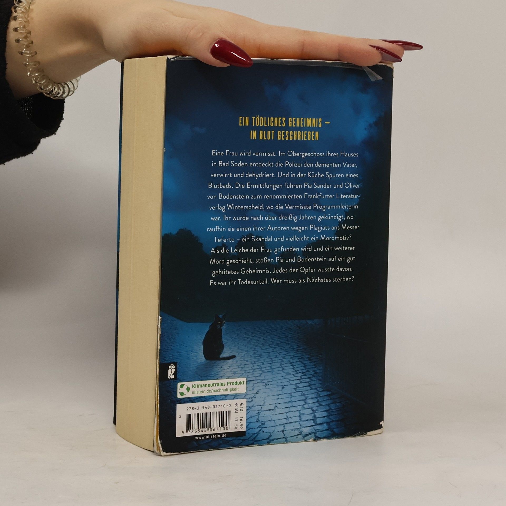 Ein tödliches Geheimnis – in Blut geschrieben Der neue Krimi von Nr.1-Bestsellerautorin Nele Neuhaus! Eine Frau wird vermisst. Im Obergeschoss ihres Hauses in Bad Soden findet die Polizei den dementen Vater, verwirrt und dehydriert. Und in der Küche Spuren eines Blutbads. Die Ermittlungen führen Pia Sander und Oliver von Bodenstein zum renommierten Frankfurter Literaturverlag Winterscheid, wo die Vermisste Programmleiterin war. Ihr wurde nach über dreißig Jahren gekündigt, woraufhin sie einen ihrer Autoren wegen Plagiats ans Messer lieferte – ein Skandal und vielleicht ein Mordmotiv? Als die Leiche der Frau gefunden wird und ein weiterer Mord geschieht, stoßen Pia und Bodenstein auf ein gut gehütetes Geheimnis. Beide Opfer kannten es. Das war ihr Todesurteil. Wer muss als nächstes sterben? Pia und Bodenstein jagen einen Täter, der ihnen immer einen Schritt voraus zu sein scheint ...