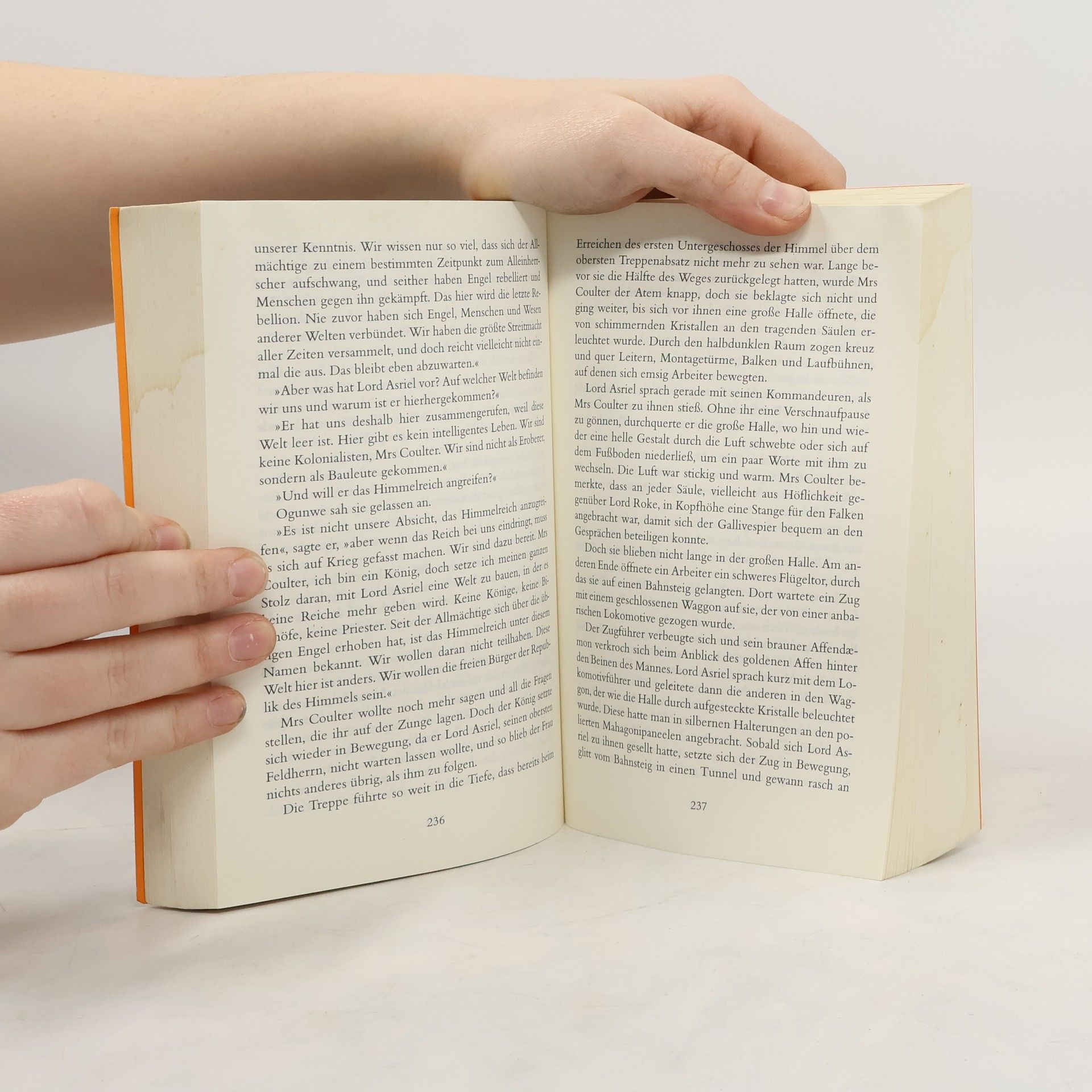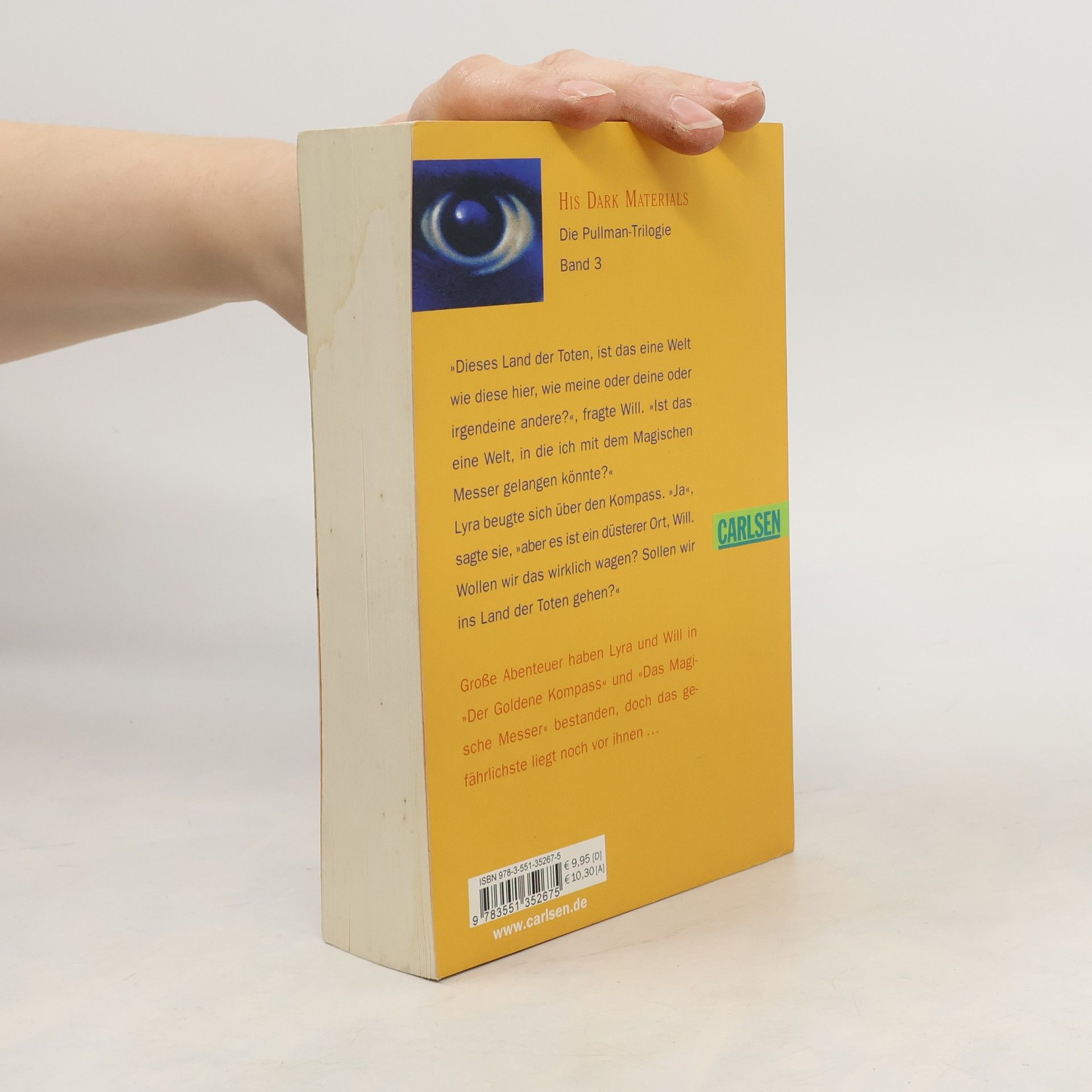 Viele atemberaubende Abenteuer haben Lyra und Will schon bestanden, seit der Goldene Kompass sie zusammenbrachte. Aber ihre gemeinsame Reise ist noch lange nicht zu Ende. Immer deutlicher spürt Lyra, dass eine Antwort auf ihre Fragen nur im Reich der Toten zu finden ist. Gegen alle Widerstände steigen Will und sie in diese schrecklichste aller Welten hinab fest entschlossen, eine alte Schuld zu sühnen und eine Prophezeiung zu erfüllen, von der sie nur eine vage Ahnung haben. Und sie wissen, dass am Ende dieses Weges noch größere Gefahren auf sie warten, denn die Allermächtigsten rüsten sich zur entscheidenden Schlacht zwischen Gut und Böse.